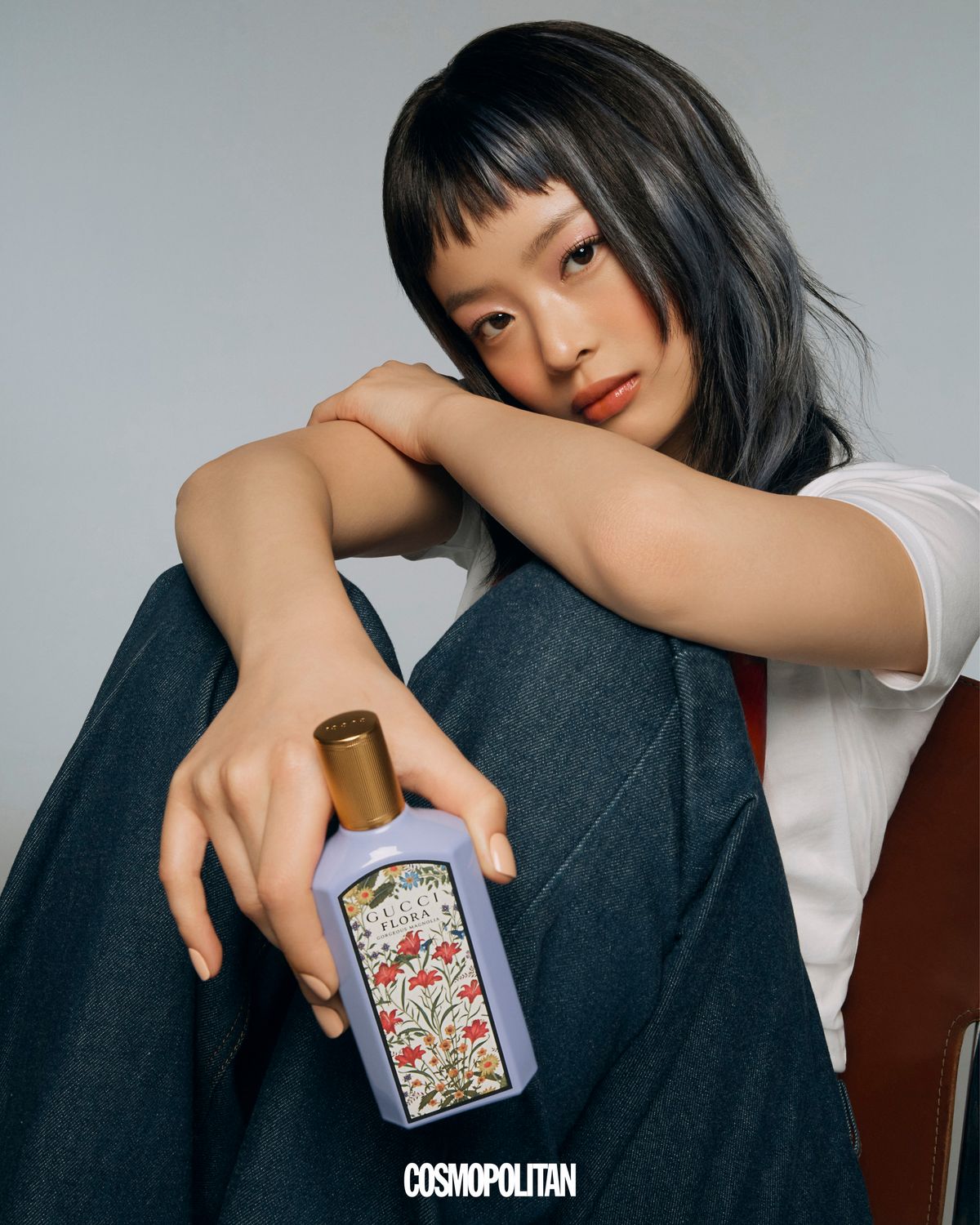 하니의 독보적인 매력과 어우러져 그 어느 때보다 자유로운 뷰티 룩을 완성한 구찌뷰티 플로라 골저스 매그놀리아 오 드 퍼퓸. 청초한 매그놀리아와 달콤한 과일 향 그리고 섬세한 흙 내음이 오묘한 조화를 이뤄 풋풋하고 유니크한 무드를 선사한다. 끝으로 부드러운 코코넛과 재스민 삼박 앱설루트의 머스키한 향이 피부에 스며 잔잔한 여운을 남긴다. 구찌뷰티 플로라 골저스 매그놀리아 오 드 퍼퓸 100ml 26만4천원 Gucci Beauty. 티셔츠, 데님 팬츠 모두 가격미정 Gucci.