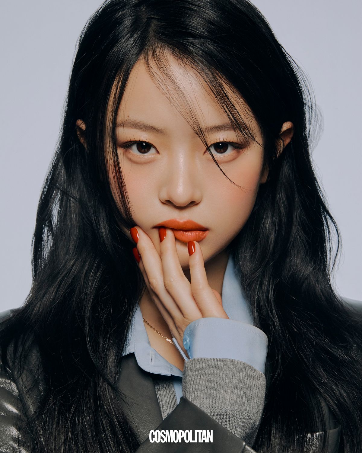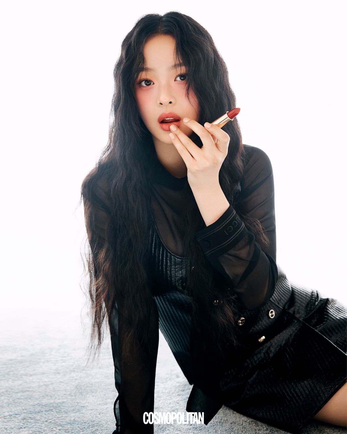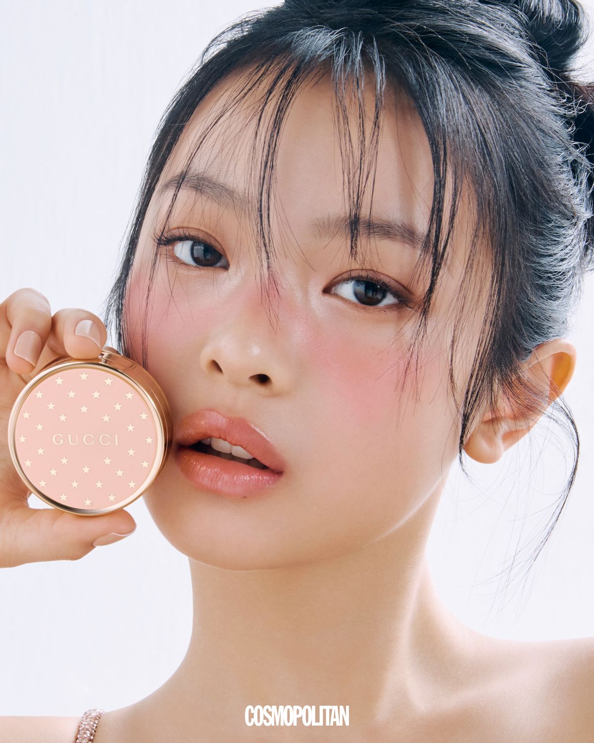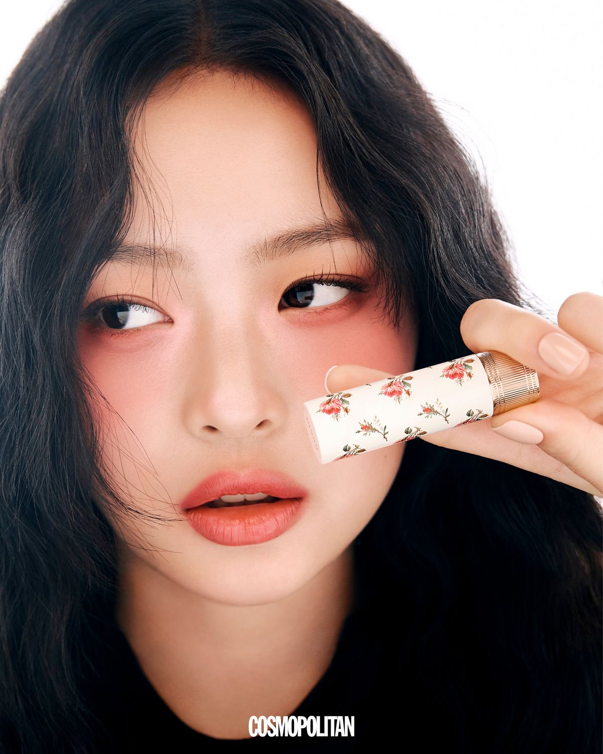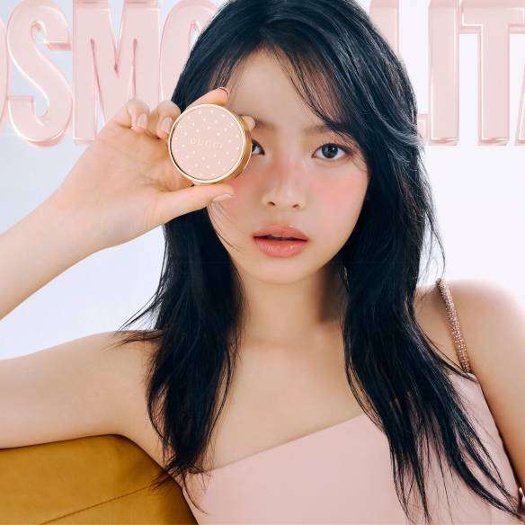 하니의 클래시함이 돋보일 수 있도록 구찌뷰티 일루미나떼 드 보떼 멀티 유즈 드롭스 케어링 앤 리퀴드를 얼굴 전체에 발라 건강하게 빛나는 피부를 연출한 뒤 구찌뷰티 크레이용 데피니씨옹 쑤르씰 파우더 아이브로우 펜슬 #01 토프로 아치형 눈썹을 그려 세련되고 우아한 인상을 완성했다. 아이 메이크업은 섀도를 과감하게 생락하고 구찌뷰티 마스카라 옵스뀌흐를 속눈썹 뿌리부터 꼼꼼하게 바른 뒤 구찌뷰티 에끌라 드 보떼 에페 뤼미에르 멀티 유즈 젤 글로스를 눈두덩에 발라주면 은은한 광택이 도는 선명한 눈매를 연출할 수 있다. 구찌뷰티 뿌드르 드 보떼 마프 나뛰렐 뷰티 파우더 #06으로 페이스 라인과 광대뼈 라인을 가볍게 쓸어 음영감을 준 다음 구찌뷰티 블러시 드 보떼 치크 & 아이 파우더 #03 래디언트 핑크를 양 볼에 연하게 터치해 입체감 있는 얼굴을 완성. 끝으로 구찌뷰티 루즈 아 레브르 리퀴드 매트 립 컬러 #311 리지 타이거를 풀 립으로 발라 분위기 있으면서도 지루하지 않은 뷰티 룩을 마무리했다. 레더 재킷, 카디건, 셔츠 모두 가격미정 Gucci.