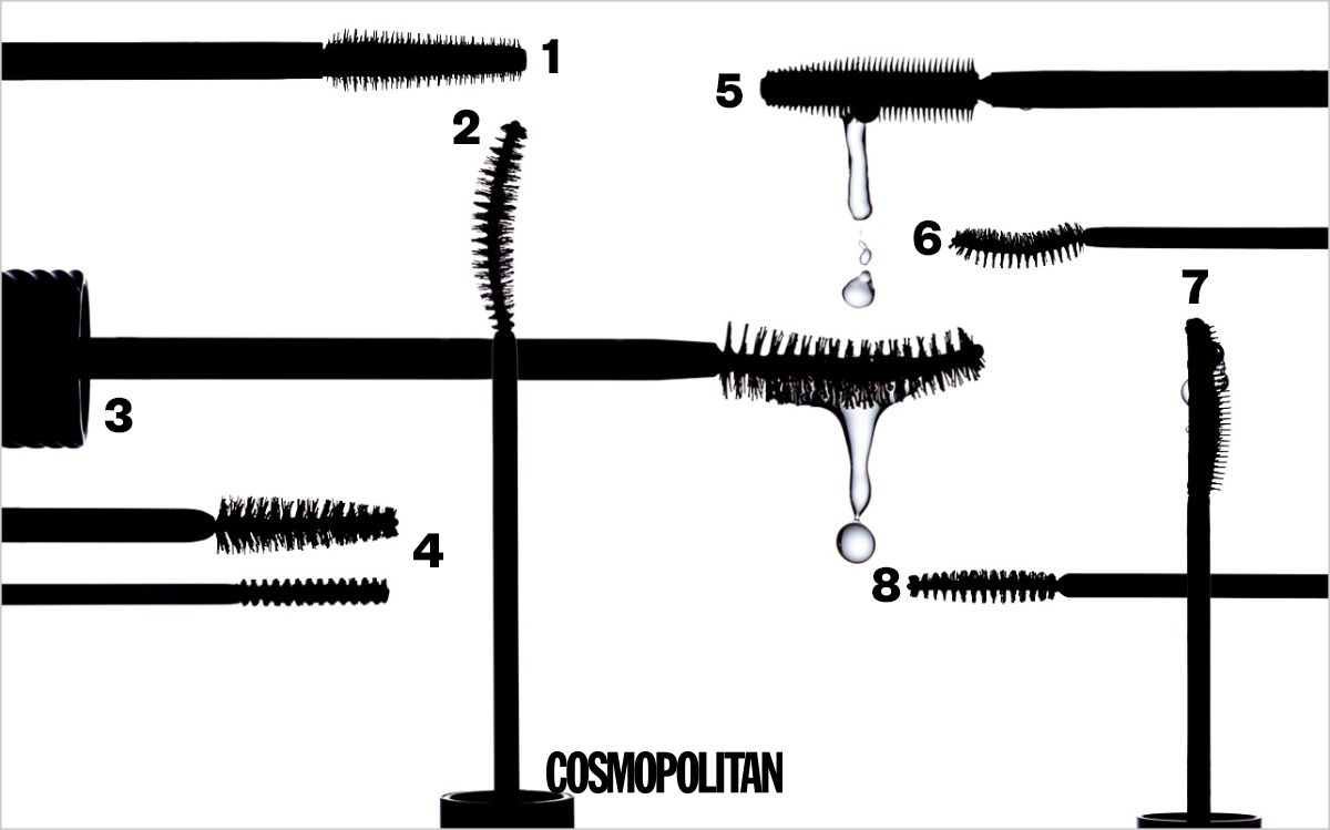 8 솔이 가늘고 촘촘해 바르기 힘든 눈 앞머리와 언더 래시까지 균일하게 마스카라액을 바를 수 있다. 마스카라액이 가볍고 떡지지 않아 눈가에 유분이 많거나 꼬막 눈이라도 잘 번지지 않는다. 컬 픽스 마스카라 1만5천원 Etude.