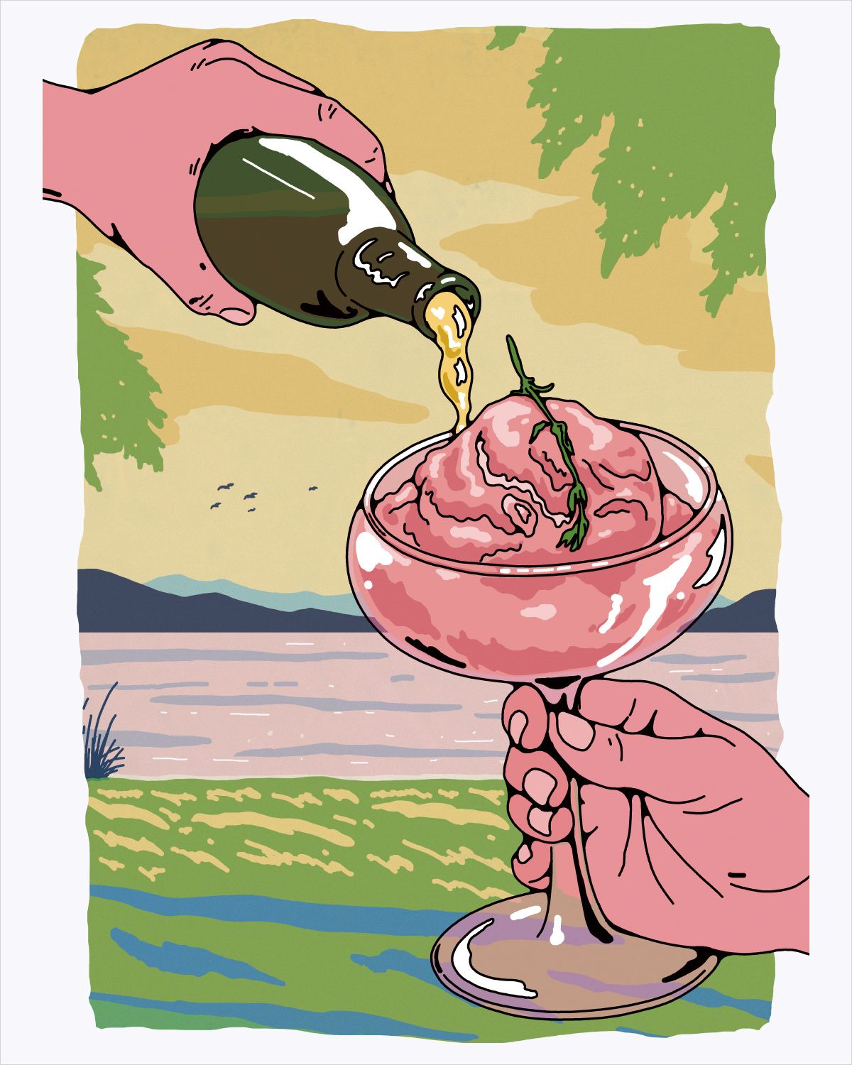 와인부터 샴페인, 다양한 칵테일을 선보이는 샴페인&스파클링 바답게 이곳에서만 맛볼 수 있는 메뉴를 만들고 싶었어요. 그러다 아이스크림과 샴페인의 조합을 떠올렸죠. 딸기 아이스크림에 딸기 시럽을 얹고, 그 위에 로제 모스카토 스파클링 와인을 부어 말 그대로 슈퍼노바표 ‘아이술크림’을 만들었어요. 딸기 아이스크림의 달콤함과 로제 스파클링 특유의 상큼한 풍미가 적절히 어우러진, 제법 사랑스러운 술이에요. 구경모 · 슈퍼노바 오너