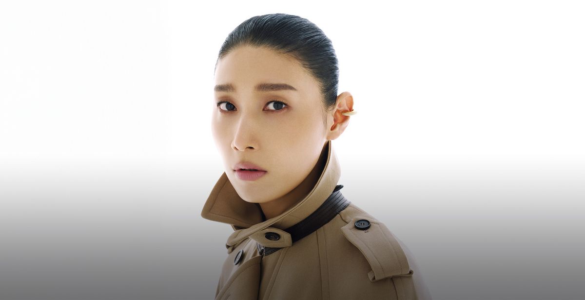 버진 울 소재의 클라이브 트렌치코트, 이어 커프로 연출한 브라스와 실크 새틴 소재의 듀오 청키 후프 이어링 모두 Loro Piana.