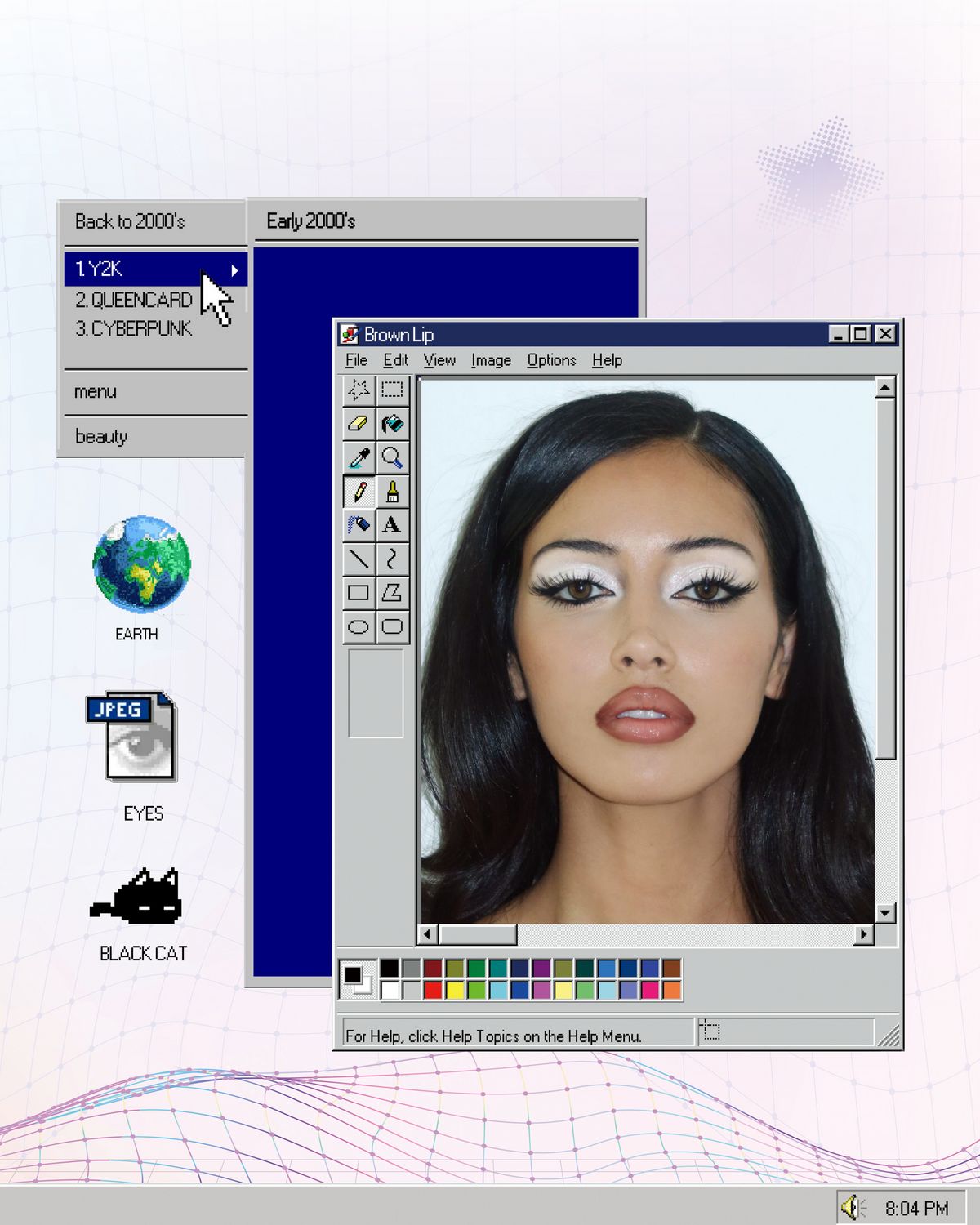 어쩌면 가장 과감했던 시대라고 할 수 있는 1990년대. 2000년대 초반에는 아직 1990년대 감성이 남아 ‘쎈캐’, ‘핫 걸’이라는 단어가 잘 어울리는 헤어, 메이크업 등이 유행했다. 먼저 헤어스타일을 자세히 살펴보면 어중간한 느낌이라고는 찾아볼 수 없다. 하늘로 치솟을 듯한 볼륨감을 연출하거나, 극단적으로 머리를 길게 풀어 헤치는 등 누가 봐도 맥시멀하게 꾸미는 게 특징. 메이크업 역시 마찬가지다. 피부 톤은 23호 이상으로 어두운 것이 특징이며, 사용하는 컬러 역시 어두운 계열이 대부분. 퍼스널 컬러와 상관없이 모두가 ‘인간 가을 웜톤’으로 살아왔던 시절이란 말씀. 가장 눈에 띄는 건 역시나 눈과 입술 메이크업인데, 입술 형태는 최근 유행하는 스타일과 거의 동일하다. 립 라이너로 입술 선을 그린 뒤 짙은 브라운 색을 발라 풀 립으로 연출하는 것이 정석. 최근에는 동일한 스타일에 립글로스를 올려 자칫 칙칙한 브라운 립에 생기를 더하며 마무리해 2024년식으로 재해석하기도 했다. 이런 방식은 카일리 제너, 신디 킴벌리 등 핫 걸들의 메이크업에서 자주 보이기도 한다. 이 시대에 절대 빼놓을 수 없는 건 역시나 스모키 아이 메이크업. 블랙 섀도와 아이라이너를 눈 아래 영역까지 넓게 터치한 뒤 과한 속눈썹까지 붙이는 게 그 당시 스타일로, ‘환불 원정대’라는 말이 딱 어울린다. Y2K 유행과 함께 스모키 아이 역시 유행하지만 이전과 달리 차분하고 소프트해졌다. Y2K 스타일에 푹 빠진 K팝 여자 아이돌들의 메이크업을 살펴보면 더 쉽게 이해할 수 있다. 속눈썹과 아이라이너에만 블랙을 사용하고, 아이섀도는 그레이, 옅은 브라운 등을 믹스해 한 층 더 부드러운 인상의 스모키 아이를 완성하는 것. 여기에 핑크 색상의 블러셔를 더해 세 보이는 느낌을 중화시키면 2024년 버전의 Y2K 바이브가 완성된다.