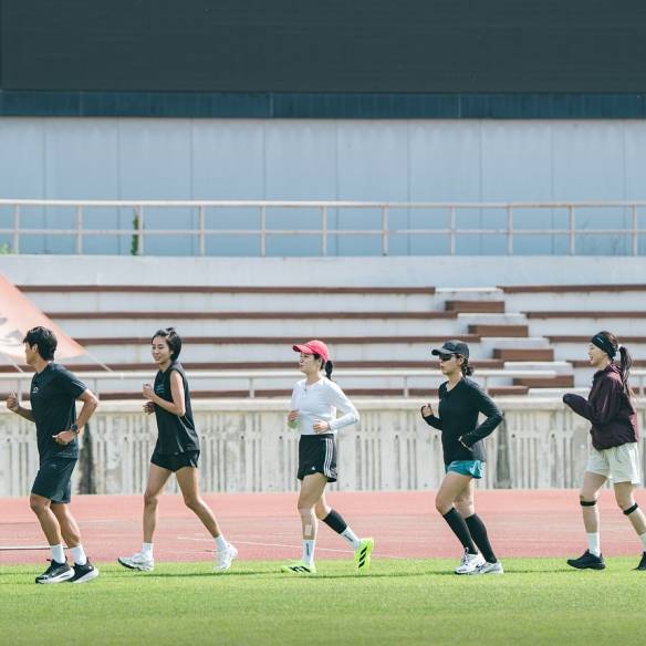 그런 그가 진서연·유이·설인아·박주현 배우를 섭외한 기준은? “섭외 조건 1순위는 평소 운동을 즐기는 사람이었어요. 운동의 매력을 아는 사람만이 이 험난한 도전을 매력적으로 느끼고 즐겁게 참여할 거라 생각했거든요. 그렇게 네 배우와 촬영하며 느낀 건, 이들과 함께라면 도전하는 에너지는 물론 운동이 주는 건강한 삶의 기쁨을 시청자에게 전달할 수 있을 것 같다는 거예요.” 현재 <무쇠소녀단>의 촬영은 절반 정도 진행됐다. 하지만 배우들은 완주를 위해 촬영과 별개로 매일 몇 시간씩 훈련하고 있다고 했다. “촬영을 시작한 지 두 달 정도 됐는데, 2년 넘게 알고 지낸 사이처럼 친해졌어요. 첫 합숙 때, 훈련을 마치고 저희끼리 이런 말을 했을 정도예요. ‘한다면 하는, 깡 있는 여자들만 모인 것 같다’라고.(웃음) 이게 <무쇠소녀단>의 분위기라 말해도 무방할 만큼 매일 열정을 쏟고 있어요.” 하지만 트라이애슬론은 열정만으로 완주할 수 있는 쉬운 종목이 아니다. 출연하는 네 배우는 물 공포증, 자건거 트라우마, 관절 통증 등 각자 다른 어려움을 겪고 있기 때문이다. “저희 <무쇠소녀단>의 관전 포인트가 그거예요. 어려움을 딛고 성장하는 모습을 보여주는 것.” “하필 폭우와 폭염의 연속인 한여름에 촬영을 시작”했지만 그 모든 난관을 이겨내는 네 배우의 열정으로 나아가고 있다고 했다.
