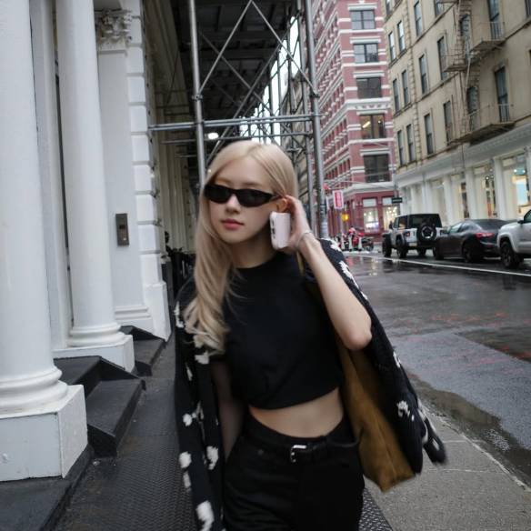 오버사이즈 싱글 버튼 스웨이드 재킷에 흰 티셔츠, 그리고 미니스커트를 매치해 클래식한 스타일링을 보여준 카즈하. 좋은 소재의 싱글 버튼 재킷은 유행 타지 않고 언제나 꺼내 입을 수 있는 아이템이다.