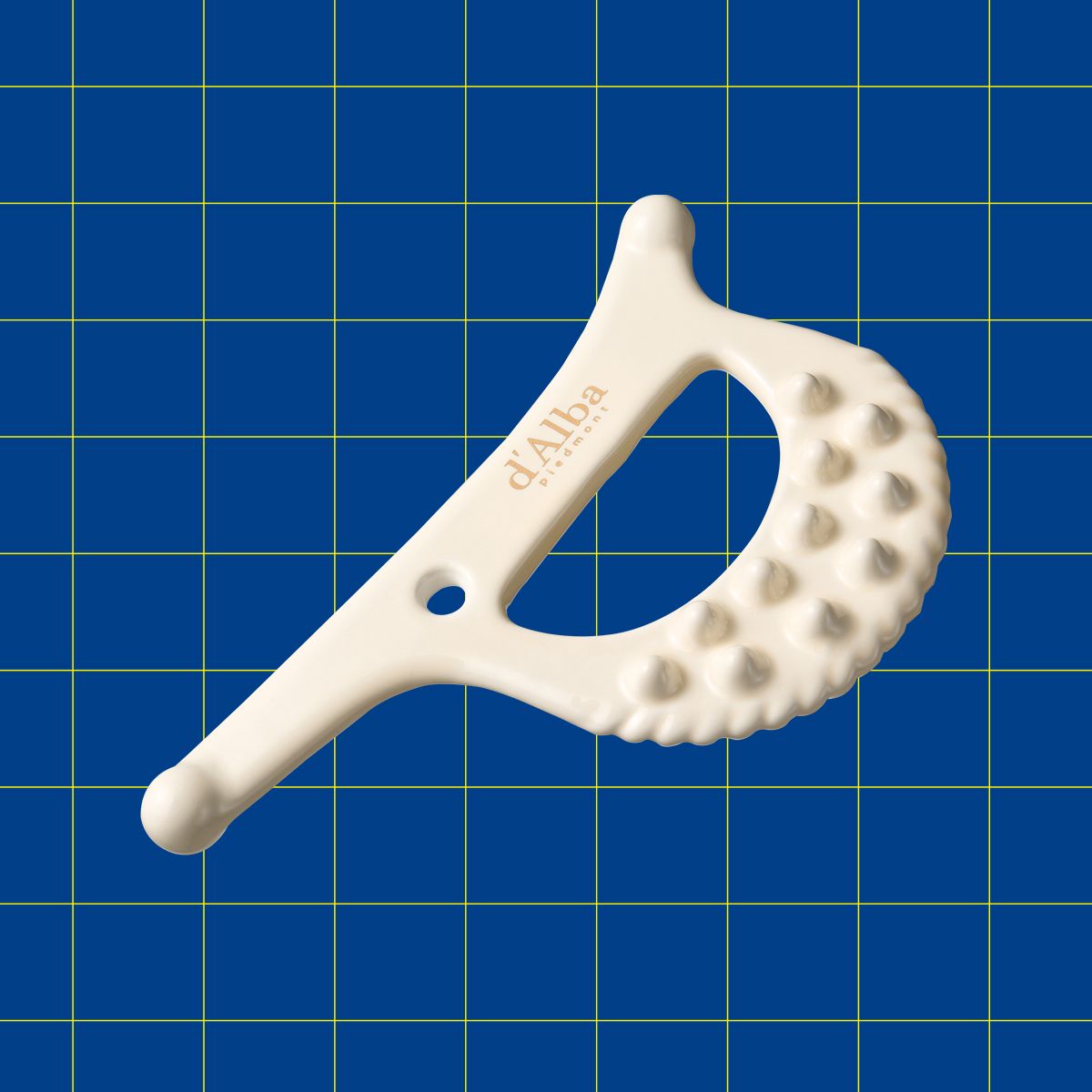 국내 공예 장인이 수작업으로 완성한 인체공학적 디자인의 세라믹 괄사. 내구성과 내열성이 뛰어난 템퍼드 백토를 전통 방식 그대로 제작해 오랫동안 변형 없이 사용할 수 있다. 손바닥보다 큰 사이즈로 생각보다 묵직해 그립감이 좋고, 얼굴과 몸 부위별로 핏한 7가지 마사지 존으로 구성돼 맞춤 마사지가 가능하다. 특히 동그란 지압 존으로 눈썹 앞머리부터 눈썹 뼈까지 지그시 눌러주면 눈이 번쩍 뜨일 정도의 신세계를 맛볼 수 있다. 꾸준히 사용하면 혈액순환을 원활하게 하고, 림프 흐름을 개선해 노폐물 배출과 슬리밍 효과는 물론 피부 탄력 향상에도 큰 도움을 준다. 노폐물이 쌓여 몸이 매일 무거운 림프 악순환러