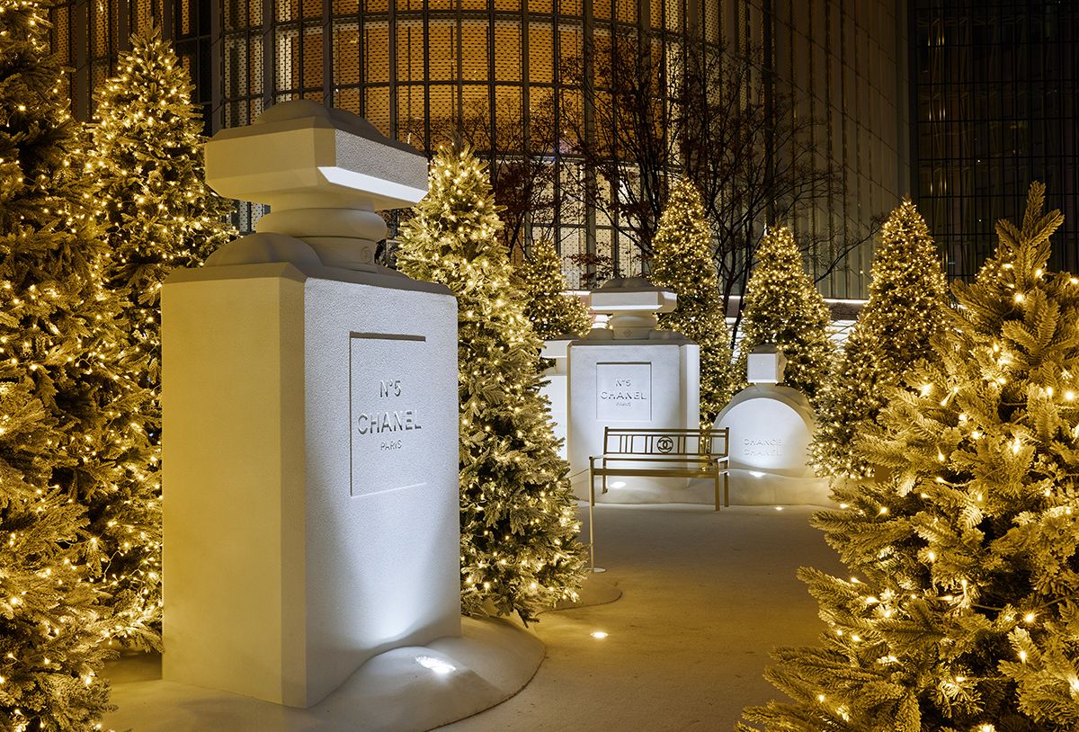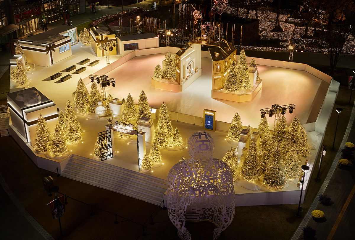 친환경 인공 아이스링크장으로 만들어진 샤넬 윈터 테일 홀리데이 아이스링크는 샤넬의 아이코닉 컬러인 골드와 화이트로 꾸며졌다. 특히 중앙에 까멜리아, 꼬메뜨, 숫자 5 등 가브리엘 샤넬이 사랑한 다양한 상징들로 장식되어 있다.