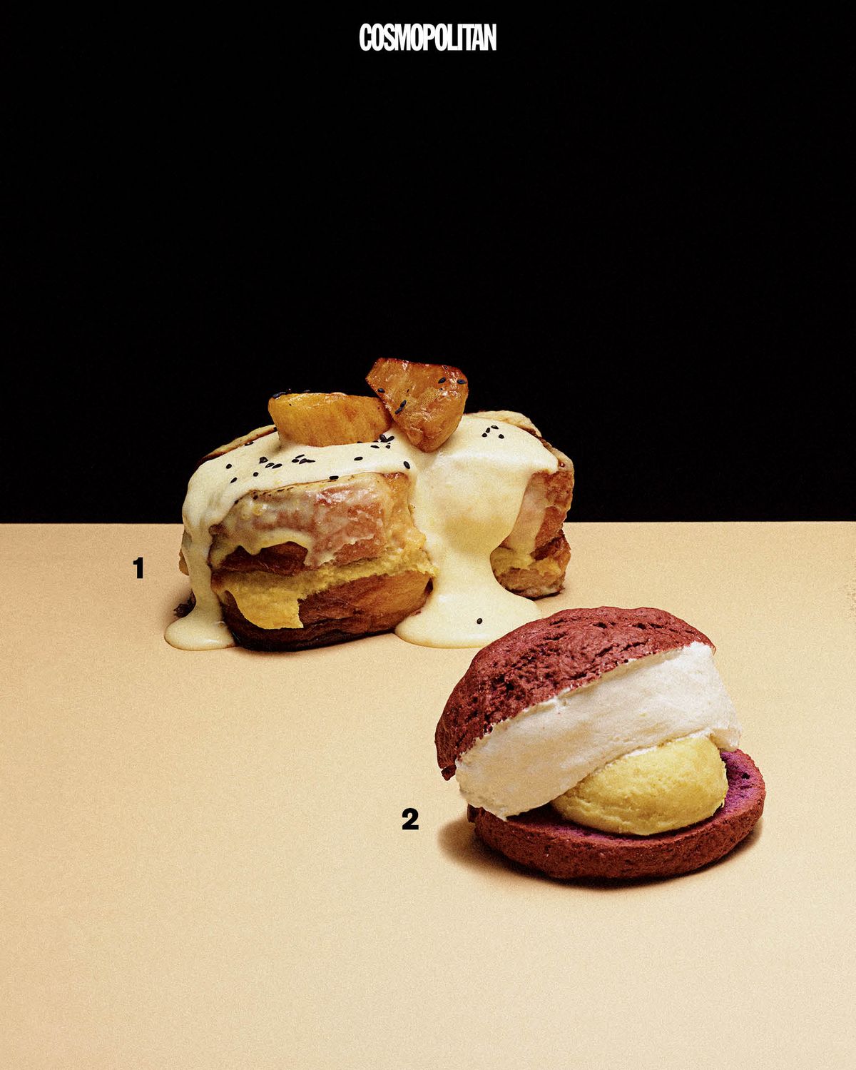 주말 아침, 늘어지게 단잠을 자고 일어나 토스트를 만들어 먹는 한가로운 테이블을 상상하며 오픈한 브런치 카페 비캔드. 이곳의 오너 김남은이 고구마로 새롭게 디저트를 고안한 건 우연히 본 넷플릭스 예능 <흑백요리사: 요리 계급 전쟁>(이하 <흑백요리사>) 때문이었다. “<흑백요리사>를 정말 재미있게 봤는데 정지선 셰프님의 ‘빠스’가 특히 인상적이었어요. 고구마는 워낙 대중적인 재료기도 하잖아요. 고구마를 활용한 디저트를 만들어보면 어떨까 하는 생각이 스쳤죠.” 그렇게 탄생한 고구마 브륄레 프렌치토스트는 촉촉하게 우유를 적셔 구워낸 브리오슈 빵 위에 고구마 무스를 올리고, 그 위에 또 한 번 빵을 올린 뒤 고구마 크림을 듬뿍 바르고 고구마 맛탕과 흑임자를 올려 완성한 메뉴다. 자칫 퍽퍽할 수 있는 고구마의 식감을 고구마 크림과 무스가 부드럽게 감싸고, 갓 튀겨낸 고구마 맛탕과 바삭한 식감까지 선사한다. 처음부터 끝까지, 입안을 가득 채우는 고구마의 맛은 말할 것도 없고. 1 고구마 브륄레 프렌치 토스트