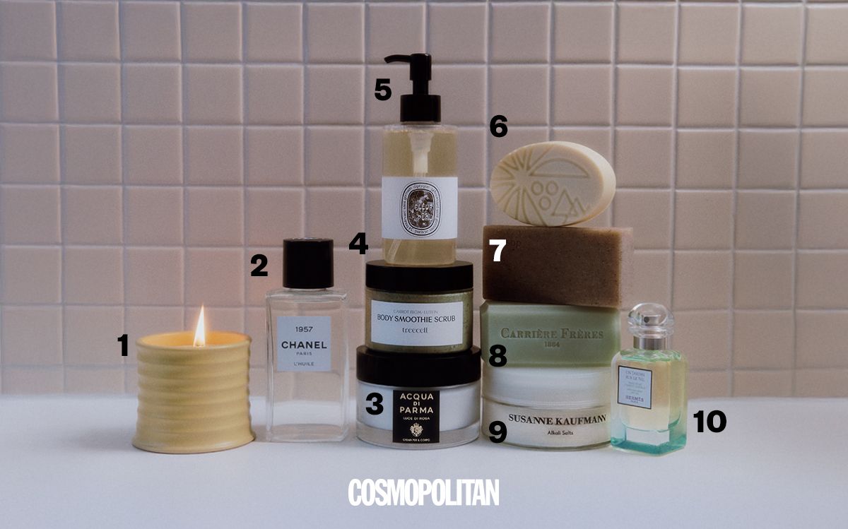 ✔ 꼼꼼한 보습 관리 목욕 중 스크럽을 했거나 소금 입욕제를 사용했다면 물기를 가볍게 제거한 뒤 보디로션을 충분히 발라 보습막을 형성하자. 만약 피부가 유독 건조하다면 오일을 섞어 바르는 것도 방법.