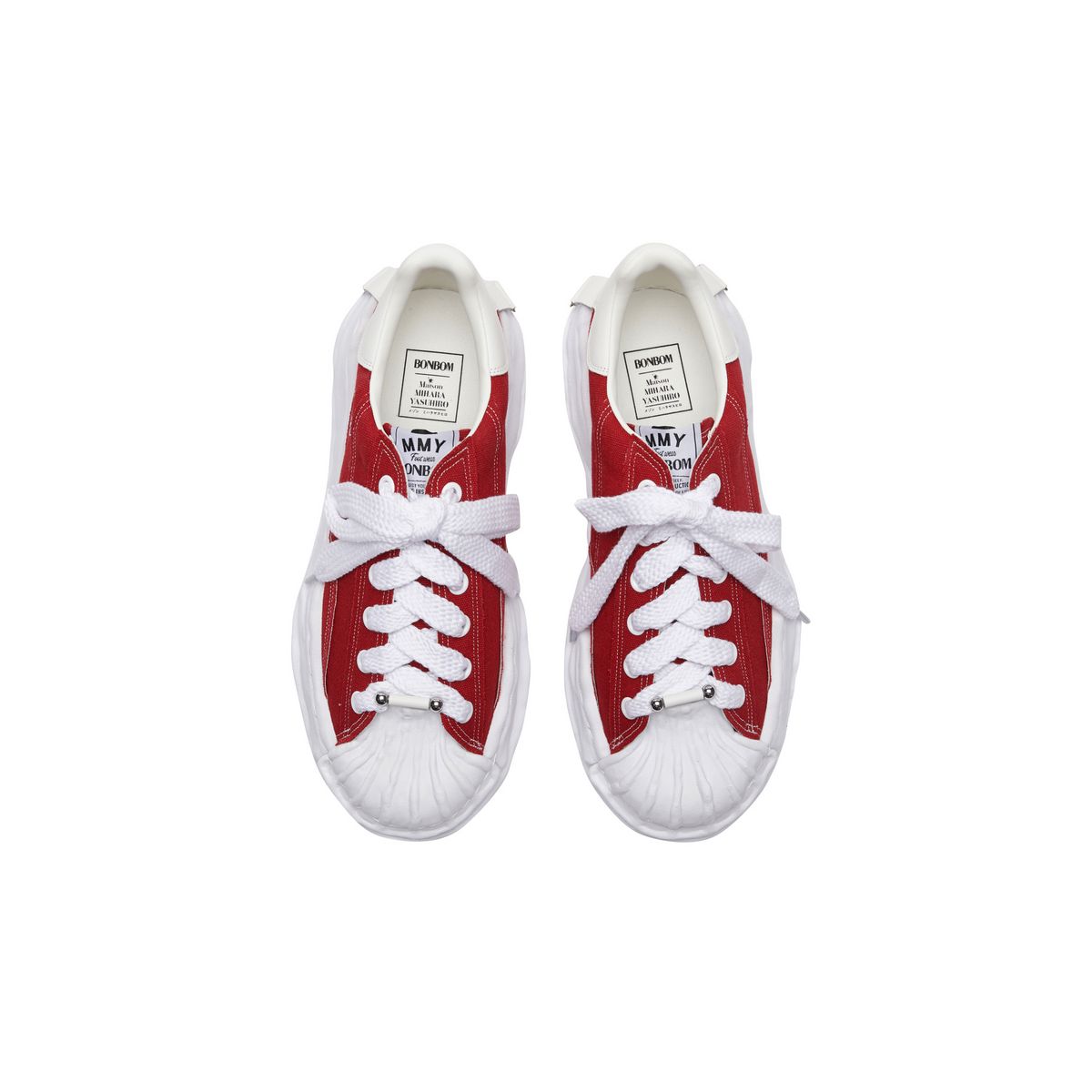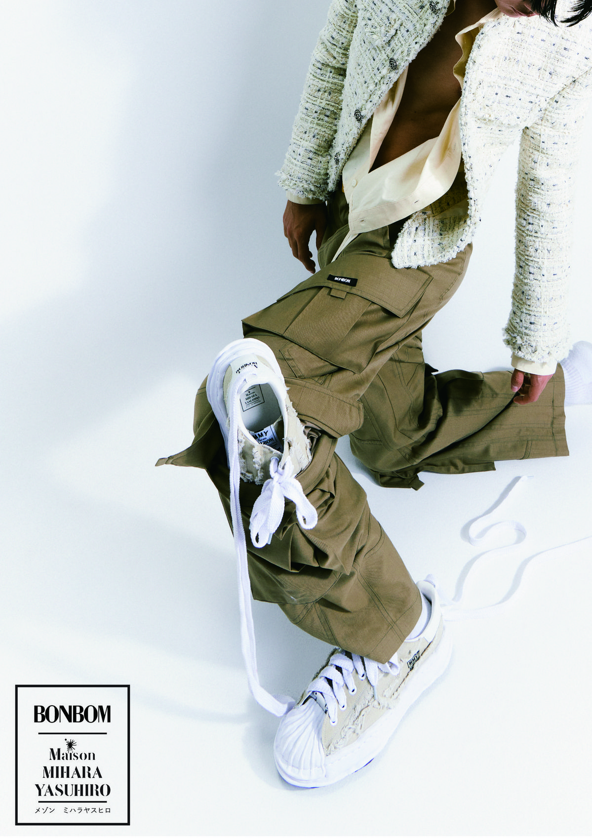 메종 미하라 야스히로의 대표 스니커즈 라인이자, 미하라 야스히로의 스니커즈하면 바로 떠오르는 독창적인 아웃솔 디자인의 ‘블레이키’. 이 슈즈에 본봄의 시그니처 디자인인 가터 절개, 코르셋과 피어싱 디테일을 더해 ‘가터’와 ‘로우 엣지’ 라인을 완성했다.