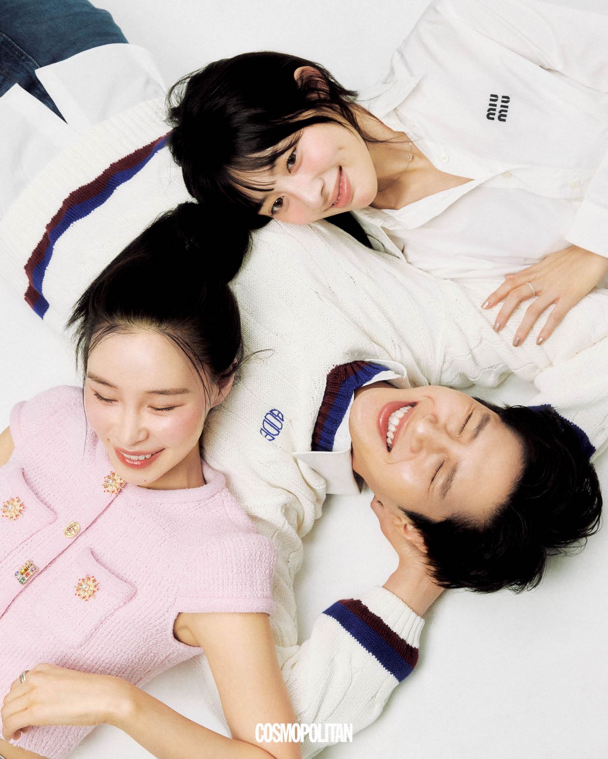 새로운 사랑을 위해, 혹은 스쳐갔던 인연과 재회하기 위해 <환승연애> 정규 시즌 출연자 8인과 뉴페이스 2인이 제주도에 다시 모였다. <환승연애> 기존 시즌이 인기 있던 만큼, 스핀오프인 <환승연애, 또 다른 시작> 역시 인기 고공행진 중. 방영이 한창인 요즘, 출연 중인 10인이 <코스모폴리탄> 카메라 앞에 섰다. 밝고 명랑한 에너지로 스튜디오를 가득 채운 이들은 화보 촬영 후 이어진 인터뷰에서 스핀오프 출연에 대한 소감과 은근한 ‘스포’를 가감없이 이야기했다. 이번 스핀오프 시리즈에 출연을 결심한 계기에 대해 이혜선은 “<환승연애> 시즌 1에 출연했을 때 20대였는데 이제 30대가 됐어요. 내면이 좀 더 성숙해진 상태에서 나가면 어떤 기분일지 궁금하더라고요. 또 방송에 나간다는 게 두렵긴 했지만 도전하는 걸 좋아해서 다시 출연하게 됐어요.” 이번에 새롭게 출연한 이관우는 “기존 <환승연애>였으면 절대 안 나왔을 거예요. 이번 방송에서는 x 없이 출연해도 된다고 해서 부담이 없었고, 무엇보다 (조)휘현이 저를 생각하고 초대해준 게 고맙기도 했고요”라며 소감을 밝혔다. 이번에 새롭게 출연하는 박지연과 이관우는 각각 기존 출연진인 이지연과 조휘현의 실제 친구다.