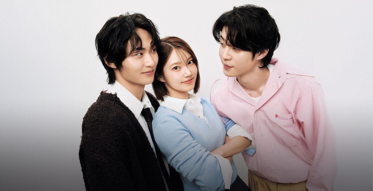(김광태)니트 카디건 Doublet. 셔츠, 타이 스타일리스트 소장품. (박나언)니트 톱 Manymoremong. 미니스커트 Shushutong. 셔츠 스타일리스트 소장품. (조휘현)후드 셔츠, 이너 톱, 팬츠 스타일리스트 소장품.