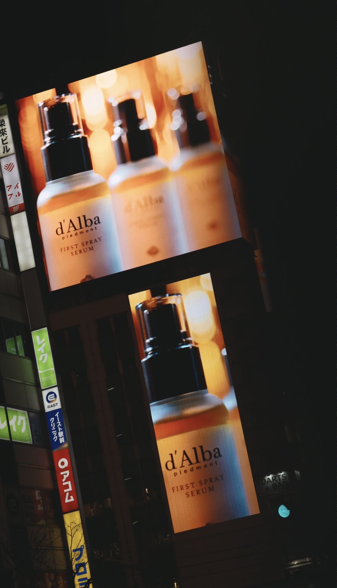 달바는 앳코스메 팝업뿐만 아니라 오모테산도, 시부야 등 도쿄에서 가장 주목받는 옥외광고를 선점해, 도심 곳곳에서 ‘달바’를 만날 수 있도록 했다. 특히 시부야 거리에서 빛나는 빌딩 옥외광고와 그 아래를 오가는 버스 광고에 모두가 시선을 빼앗겼다.