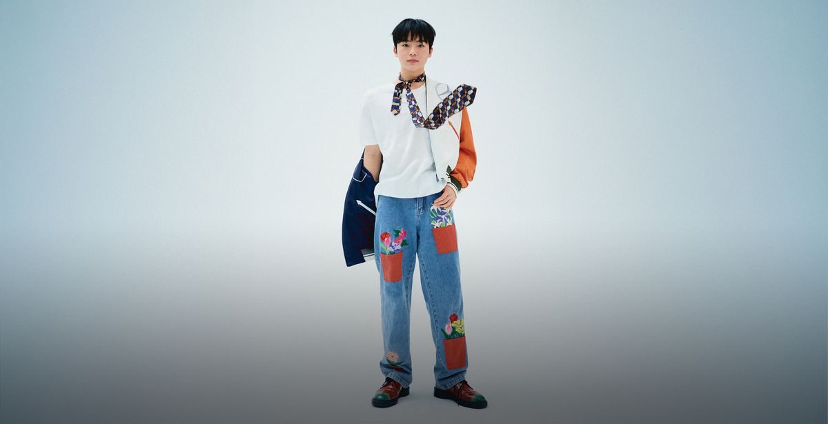 리버시블 나일론 점퍼 Monclerx Mercedes-Benz by Nigo. 데님 팬츠 KidSuper. 더비 슈즈 Supreme. 이너 톱, 타이 스타일리스트 소장품.
