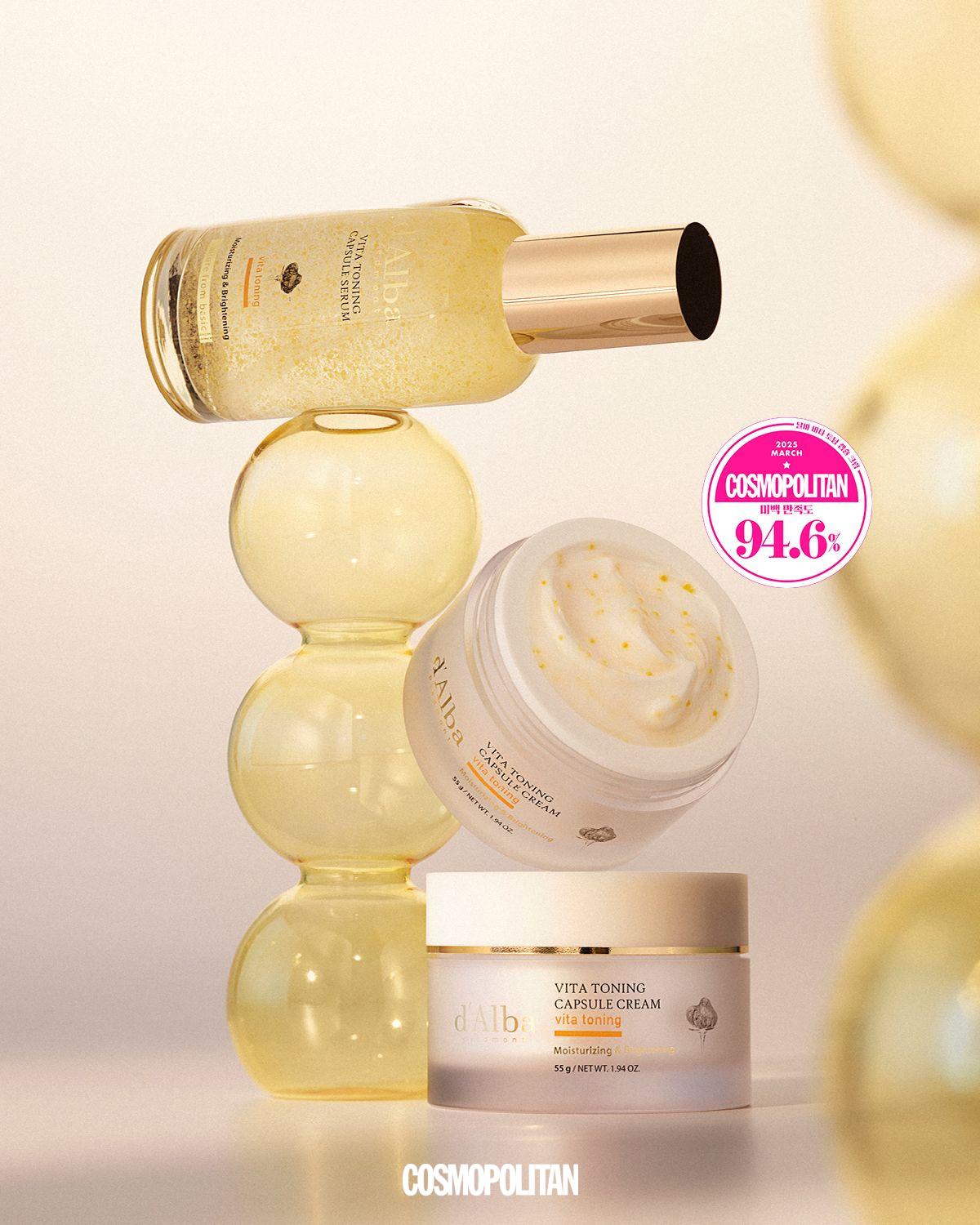 얼리 안티에이저라면 주목! <코스모폴리탄> 체험단 80인을 만족시킨 달바 ‘비타 토닝 캡슐 크림 & 세럼’을 소개한다.