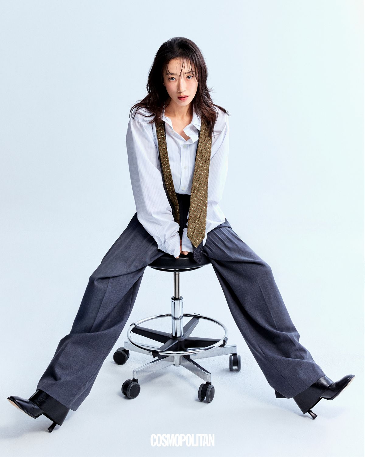 인터뷰는 <코스모폴리탄>의 슬로건 ‘FUN’, ‘FEARLESS’ ‘FEMALE’에 대한 이야기로 이어졌다. 이 슬로건처럼 곽선영은 유쾌하고 용감한 여성인지 묻는 질문에 “얼마전 대학 동기들과의 모임이 있었어요. 그때 제 20년 전 모습을 기억하는 한 동기 오빠가 그런 말을 하더라고요. 늘 씩씩하고 용감한 친구였다고요. 생각해보면 전 뭐든 씩씩하게 정면 돌파를 했던 것 같아요. 요즘 아이스 하키를 취미로 하고 있는데, 얼음판 위에 서는 것 자체가 두려울 수 있어요. 하지만, 그걸 극복해야 내가 원하는 걸 할 수 있으니 이겨낼 수 있다고 생각해요. 그래야 또 다음 단계로 나아갈 수 있고요.”라고 말하며 강인한 면모를 보였다. <슬기로운 의사생활>의 ‘이익순’, <구경이>의 ‘나제희’, <연예인 매니저로 살아남기>의 ‘천제인’ 등 배우 곽선영이 연기해온 인물들 역시 곽선영의 단단한 내면과 닮아있다. 이에 곽선영은 “생각해보니 정말 그렇네요! 모두 자기 삶을 열심히, 씩씩하게 살아가는 인물들이죠. 목표도 명확하고, 그래서 더 치려했던. 비록 그들의 삶에 큰 고비가 항상 하나씩은 있었지만요.(웃음) 그래서인지 배우 곽선영을 여러 캐릭터로 기억해 주시더라고요.”라고 지나온 캐릭터들을 회상했다. 마지막으로 앞으로의 만남을 고대하는 인물을 묻는 질문에 “저는 다 해보고 싶어요. 같은 피아노도 누가 치느냐에 따라 소리가 달라지는 것처럼, 저로 인해 인물이 더 생생하게 그려질 수 있다면, 어떤 역할이든 다 할 수 있을 것 같아요.”라고 말하며 앞으로의 여정에도 큰 기대감을 불러 일으켰다.