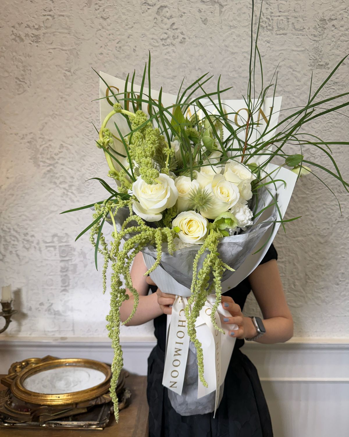 꽃은 일상 속에서 흔히 접할 수 있는 존재지만, 때로는 특별한 꽃이 시선을 사로잡는다. 최근 한 부케를 통해 그 차이를 실감할 수 있었다. 정제된 형태, 절제된 색감, 그 안에 담긴 감정과 의도가 인상 깊었다. 이 독특한 부케의 출처는 ‘초이문 아티산 플라워’였다. 브랜드명과 함께 등장한 ‘오트 쿠튀르 플라워’라는 표현은 다소 낯설지만, 그 표현은 이상하리만치 설득력 있게 다가왔다. 단순한 ‘예쁨’만으로 설명하기 어려운 깊이와 감각이 있었기 때문이다. 그 아름다움의 배경이 궁금해졌다. 그래서 이 부케를 만든 플라워 아티스트 초이문을 직접 만나, 그가 전하는 ‘꽃을 매개로 한 표현의 세계’에 대해 들여다봤다.