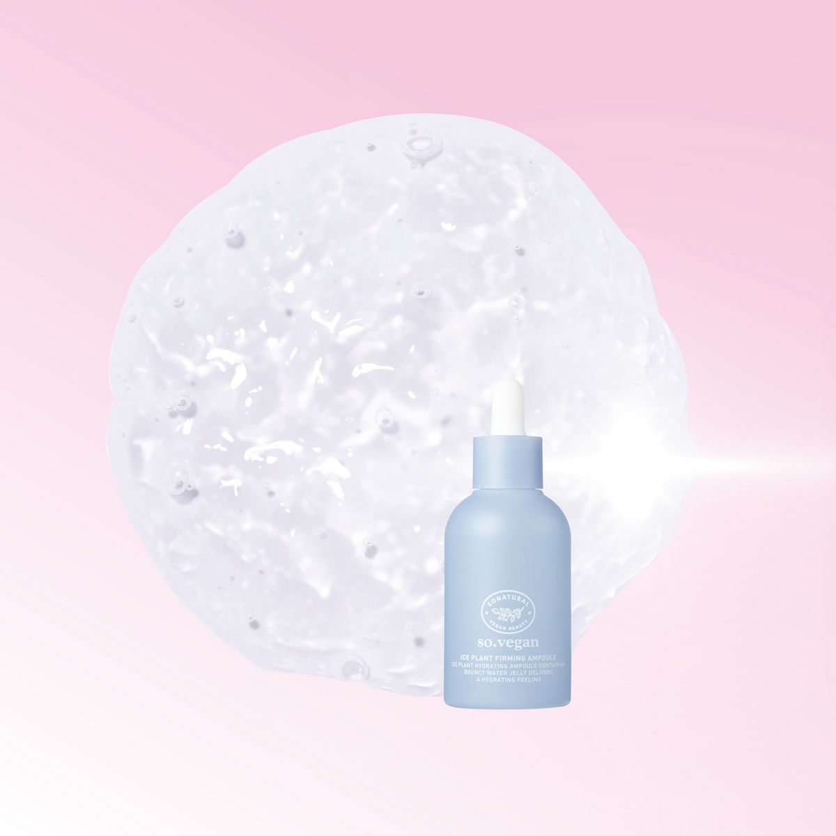 」So’natural 그냥 젤리가 아니라 탱글한 워터 젤리라니! 자세히 보면 젤리 포뮬러 안에 보습 알갱이가 채워져 있다. 극한의 건조한 환경에서도 살아남아 ‘얼음초’로 불리는, 청량감 만렙의 아이스플랜트를 함유했다.