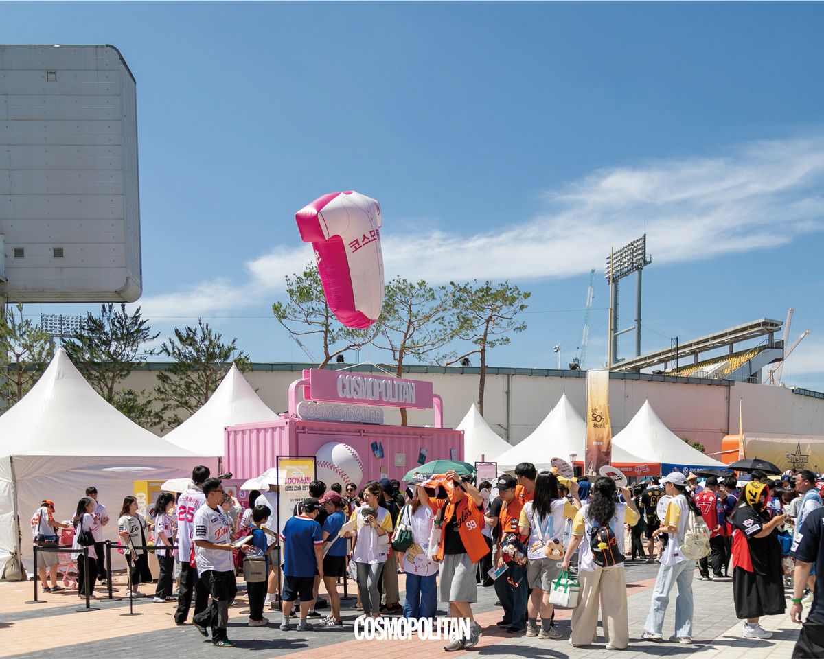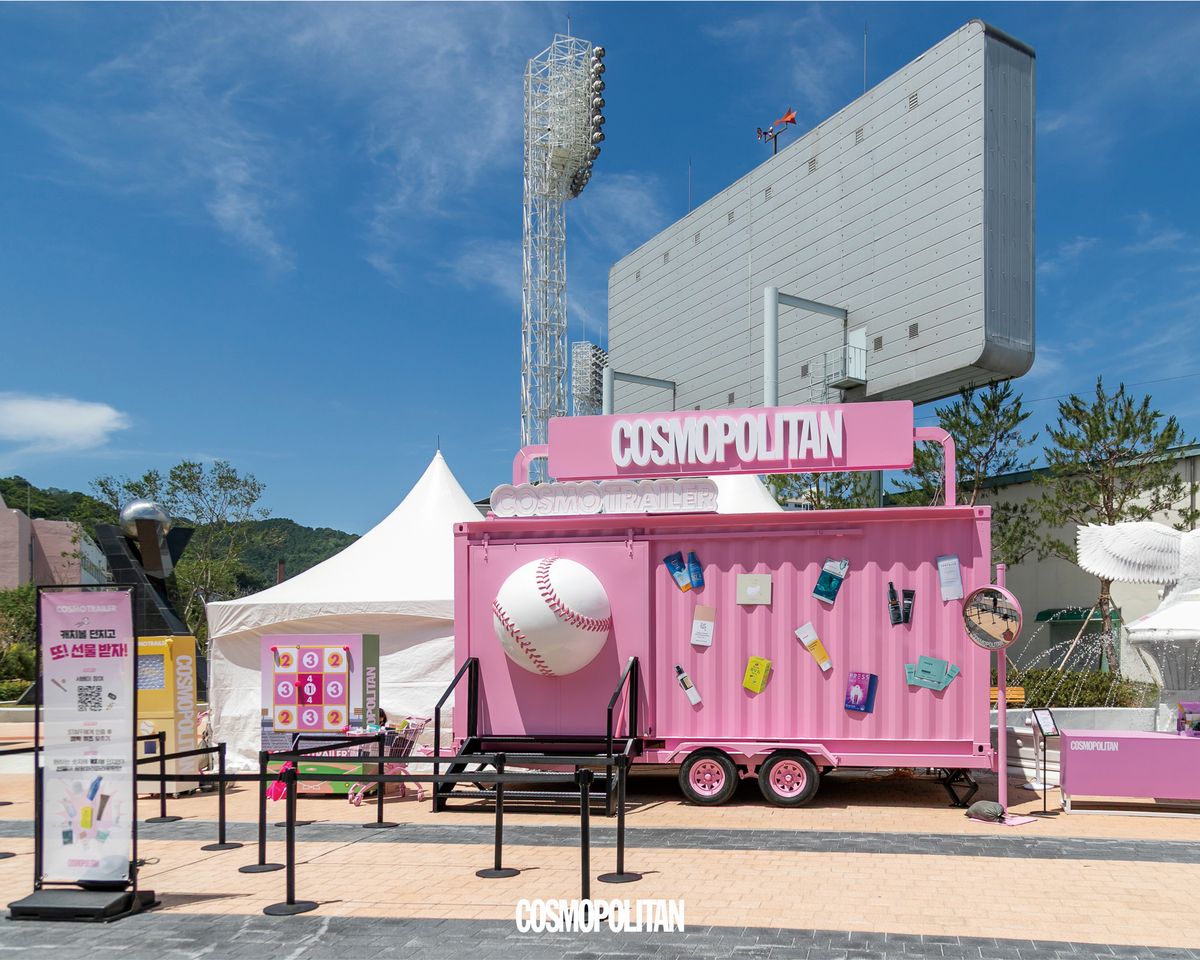 KBO 역사상 역대급 인기를 누리고 있는 2025 시즌이 반환점을 돌며 2025 KBO 리그 올스타전이 열렸다. 야구 시즌 중 가장 핫한 올스타전에 코스모 트레일러가 빠질 수 없다. 포토존과 각종 프로그램, 선물 백 증정 등 다양한 이벤트와 함께 풍성한 선물을 싣고 대전한화생명볼파크에 도착했다. 이날 준비한 3000개의 핑크 백과 700개의 캡슐 뽑기 선물, 2500개의 캐치볼 게임 경품은 올스타전이 시작하기 1시간 전 모두 소진됐고, 구장 안팎에는 코스모 핑크 짐색을 멘 관중이 하나둘 생겨났다. 유난히 묵직했던 이번 선물 백은 총 13만원 상당으로 구성했다. 니베아, 달바, 동서 콤부차, 디어 클레어스, 마녀공장, 메디힐, 스킨천사, 아이레시피, 조선미녀, 코스알엑스, 프레스샷의 제품들로 가득 채웠고, 이벤트를 통해 다양한 랜덤 선물도 증정했다. 34℃에 육박하는 날씨에도 코스모 트레일러 부스 행사에 참여하기 위한 행렬은 꼬리를 물고 이어졌다. 트레일러 방문객에겐 김도영·문동주·윤동희 선수의 <코스모폴리탄> 화보 컷으로 만든 부채도 증정했는데, 무더위에 오아시스 같은 역할을 톡톡히 했다는 후문. 경기 후에는 코스모 핑크 짐색과 선물들을 인증하는 게시물이 쏟아졌다. X(구 트위터)를 통해 모니터링한 리뷰에 따르면 “<코스모폴리탄> 코스모 트레일러의 감다살 핑크 백 구성 미친 거 아니냐 진짜”, “(핑크 백을) 열자마자 <코스모폴리탄> 부스 방향으로 절했다. 이게 다 공짜였다니”, “와! 올스타전 <코스모폴리탄> 혜자다. 티켓값 뽕 뽑음. 심지어 마녀공장 클렌징폼 본품 줌”, “올스타전 최고 복지 <코스모폴리탄>” 등의 폭발적인 반응이 쏟아졌다. 이날 <코스모폴리탄> 부스 방문자 수는 5000명 이상. 온갖 선물이 쏟아지는 코스모 트레일러의 다음 행선지는 과연 어딜까? <코스모폴리탄>의 더 많은 독자와 만날 수 있는 곳이라면 어디든! 코스모 트레일러는 달려간다.