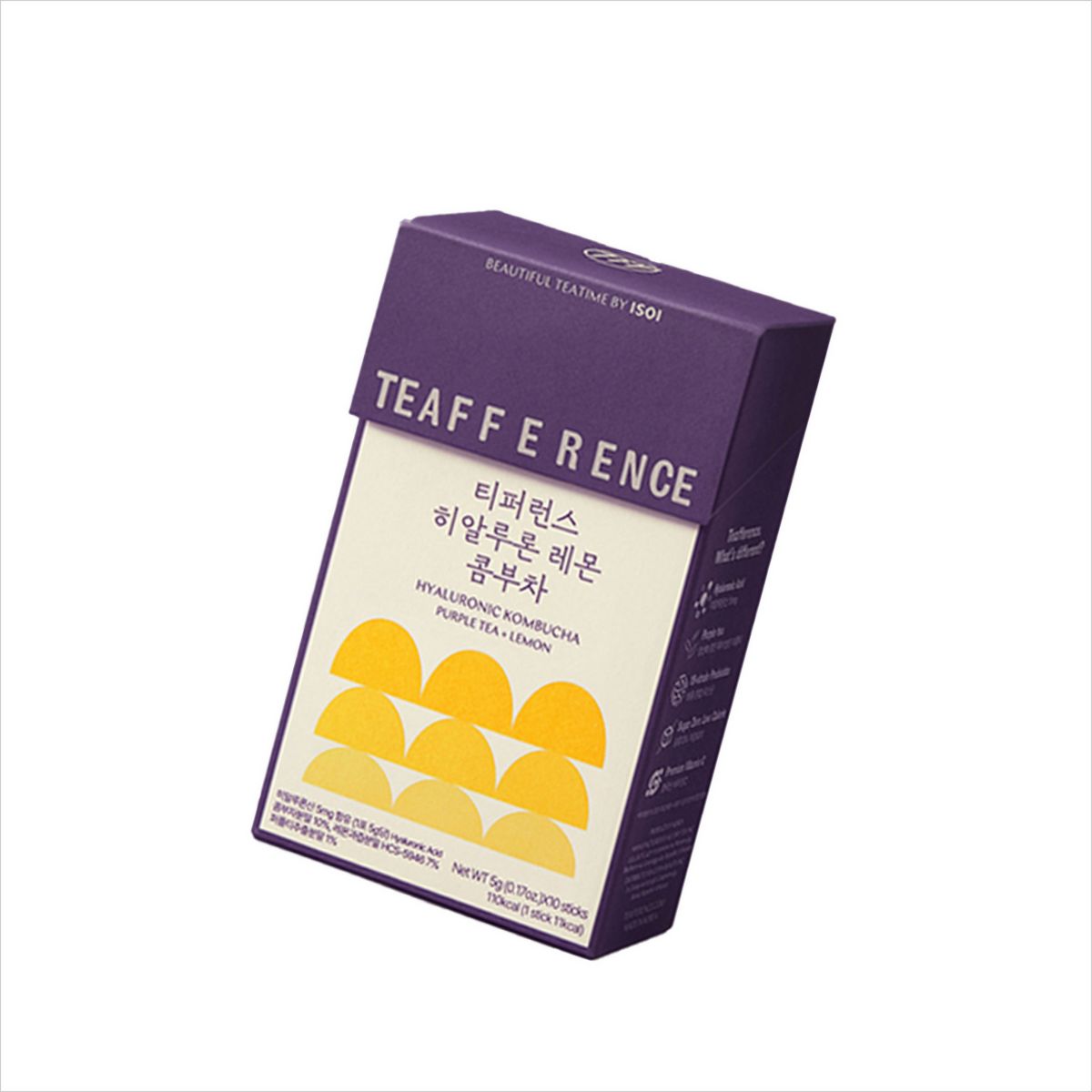 티퍼런스의 시그너처 성분이자 항산화 증진 특허 성분이 입증된 ‘퍼플티’에 히알루론산과 비타민 C를 더한 프리미엄 콤부차다. 수분 증진 효과로 즉각적인 체내 보습과 비타민 C를 보충할 수 있어 여름철 갈증 해소에 딱이다. 한 포를 300ml의 시원한 물에 풀면 적당한 탄산감이 올라오는데, 퍼플티의 프루티하고 새콤한 풍미가 더해져 입안 가득 청량감이 폭발한다. 혈당 스파이크에 치명적 빌런인 콜라를 대신해 내 몸의 수분을 건강하게 채울 탄산음료, 아니 ‘탄산 건강 차’라 할 수 있겠다. 레몬과 블루베리 맛 중에 선택 가능!