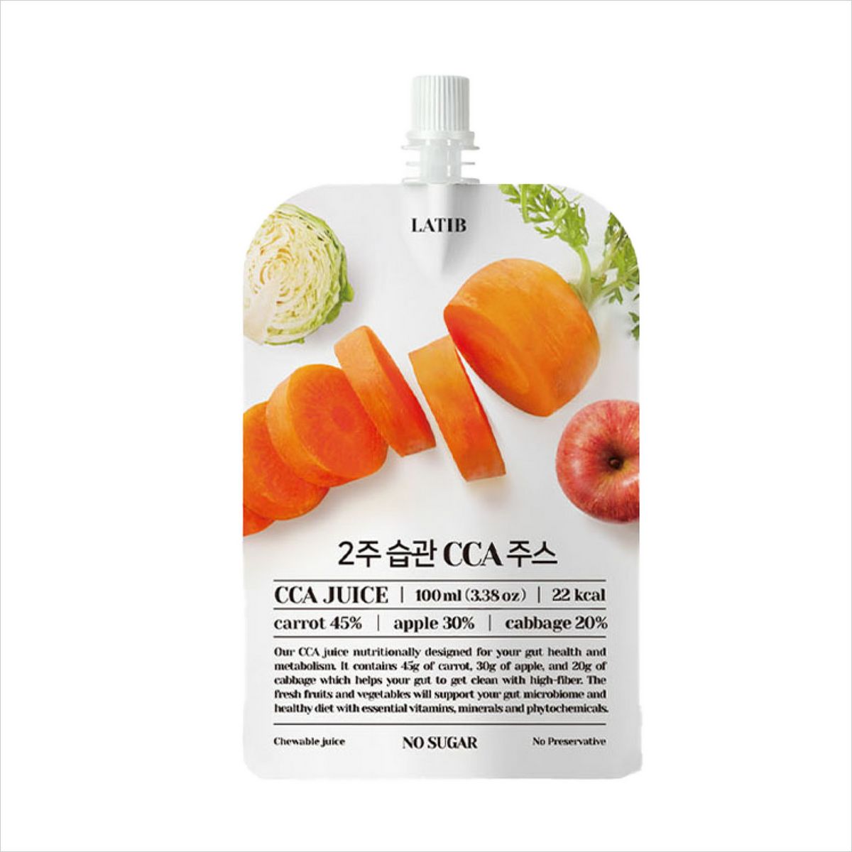 이 주스의 첫인상은 식감이 살아 있다는 것이었다. 산지 직송한 사과, 당근, 양배추를 통째로 갈았기 때문인데, 재료를 생으로 섭취하거나 착즙했을 때보다 흡수율이 훨씬 더 높다. 게다가 건더기가 많고, 적당히 걸쭉한 농도 덕분에 포만감도 좋다. 에디터는 최근 잦은 야근으로 ‘가짜 배고픔’을 수시로 느꼈는데 그때마다 냉장고에 넣어뒀던 시원한 주스를 한 팩씩 먹었더니 갈증과 포만감을 채우기 충분했다. 다이어트로 식단 중인 이들과 습관적으로 야식을 찾는 이들 모두 만족할 수 있을 것. 브랜드의 무설탕, 무가당, 무첨가의 3無 철학으로 완성된 진정한 건강 주스라 믿고 마실 수 있다.