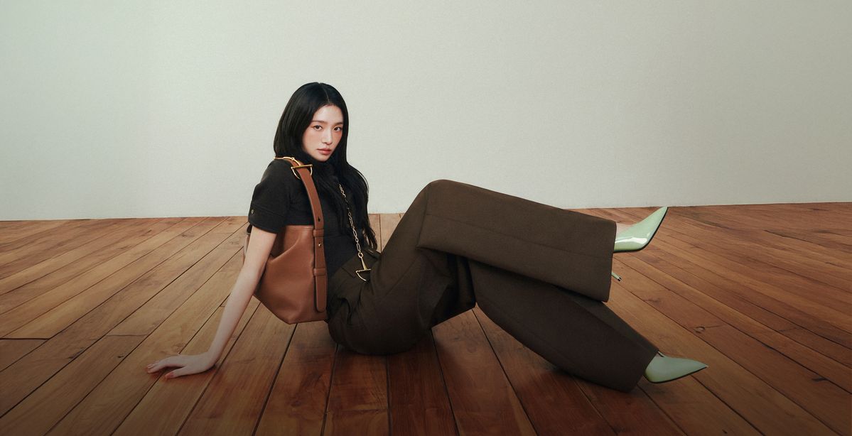 실크 톱 2백70만원, 샤이니 레더 펜슬 스커트 6백만원, 의자에 걸친 오버사이즈 재킷 1천50만원, 구찌 시에나 스몰 숄더백 5백50만원, 라이트 그레이 펌프스 1백86만원 모두 Gucci.