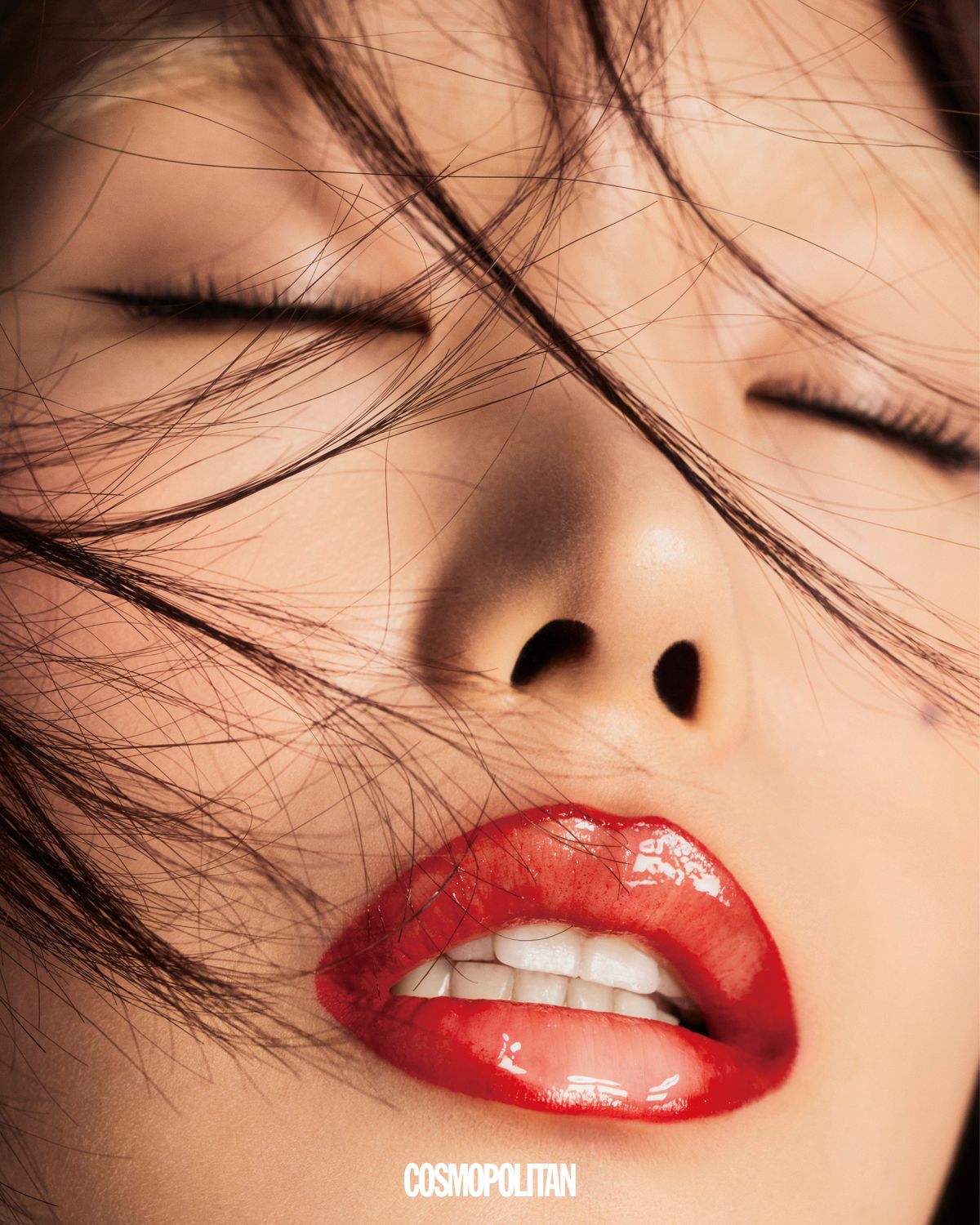 정제된 선이 입술을 휘감는다. 지속력과 발색력이 뛰어난 세포라 크림 립 스테인 리퀴드 립스틱 올웨이즈 레드로 립 라인을 또렷하게 그린 뒤, 입꼬리 쪽은 흐림과 선명함이 교차하도록 경계를 흩트린다. 안쪽에는 청명한 글로스를 더해 잘 익은 체리처럼 볼륨감 넘치는 룩을 완성했다.