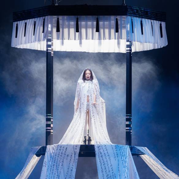 ‘COSMOGONY: The Sound of Breaking Stars’. 별자리처럼 서로 연결된 존재들의 의미를 표현했어요. 과거와 현재, 미래가 서로 조화를 이루고 인간과 기술이 공존하는 미래지향적이고 시적인 세계를 표현하는 것이 핵심이에요.