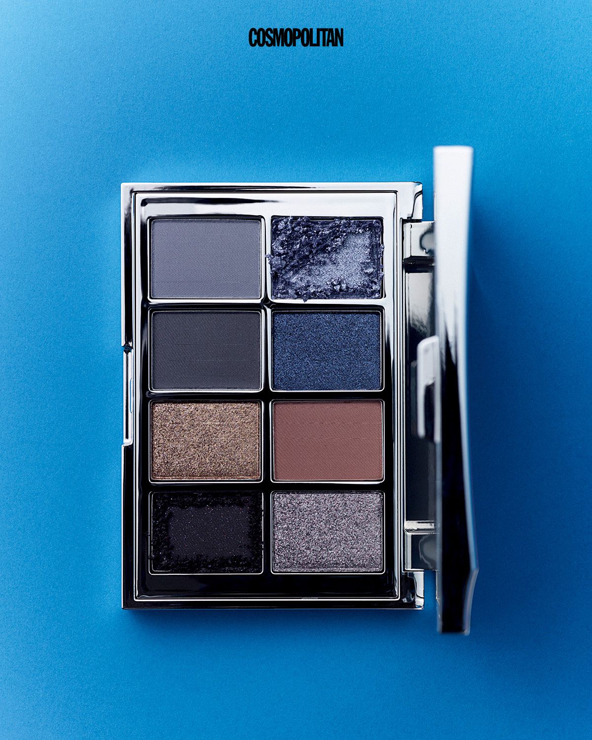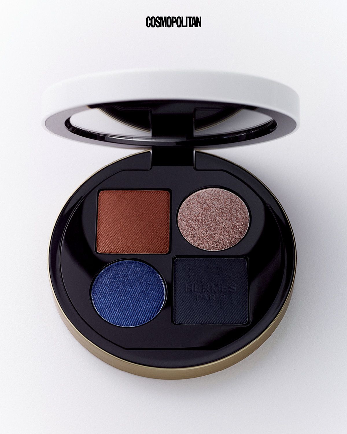 네이비와 샴페인, 브라운 컬러가 눈가에 깊이감 있는 음영을 주고 쨍한 블루 컬러가 포인트를 더한다. 웨어러블한 데일리 룩부터 화려한 이브닝 룩까지 폭넓게 소화할 수 있다. 아이섀도우 팔레트 옹브르 마린 15만6천원 Hermès Beauty.