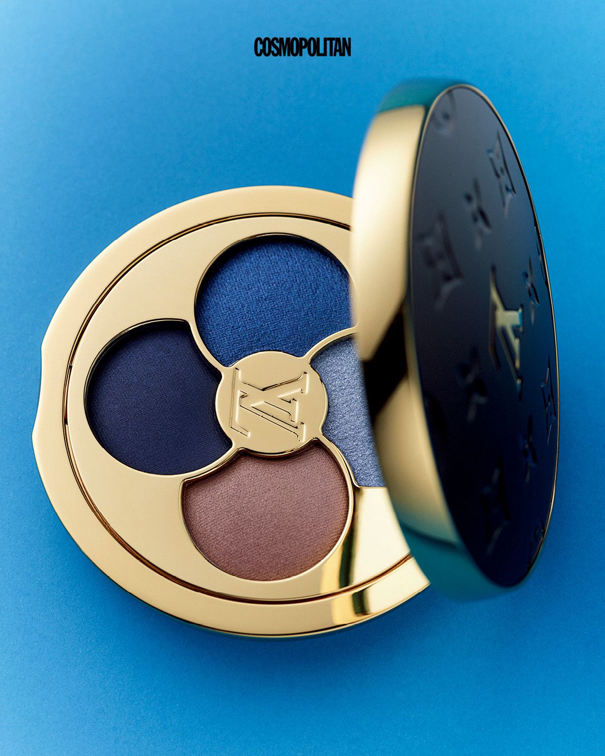 블루와 네이비, 아이시한 글리터까지 담아낸 다채로운 푸른 컬러 스펙트럼에 브라운을 더한 4구 섀도 팔레트. 한 번의 터치로 또렷하고 강렬한 아이 메이크업을 완성한다. LV 옴브르 아이섀도우 팔레트 950 스카이 이즈 더 리미트 36만원 La Beauté Louis Vuitton.