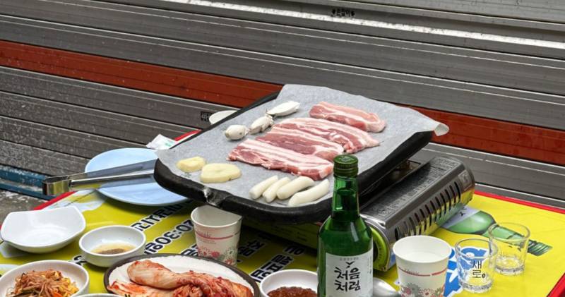 」방배대하구이, 포장마차 감성으로 즐기는 새우구이와 라면 조합.