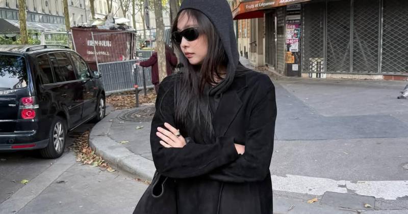 」제니는 블루 그레이 퍼 코트로 트렌디한 힙 무드