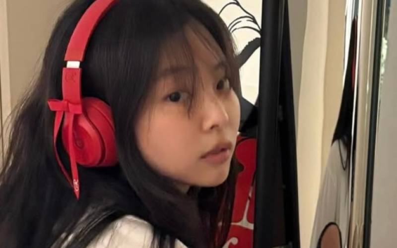 젠Z패션의 선두주자 레이는 캣워싱 흑청 부츠컷 데님에 니트 폴라 슬리브리스를 매치해 성숙하고 핫한 룩을 보여줬네요.
