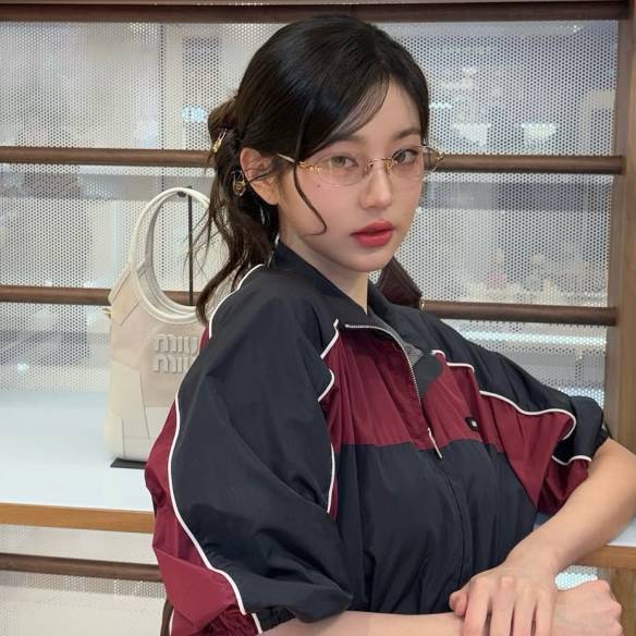 올블랙 무스탕으로 시크한 무드를 자아내는 조유리. 인스타그램 @zo__glasss