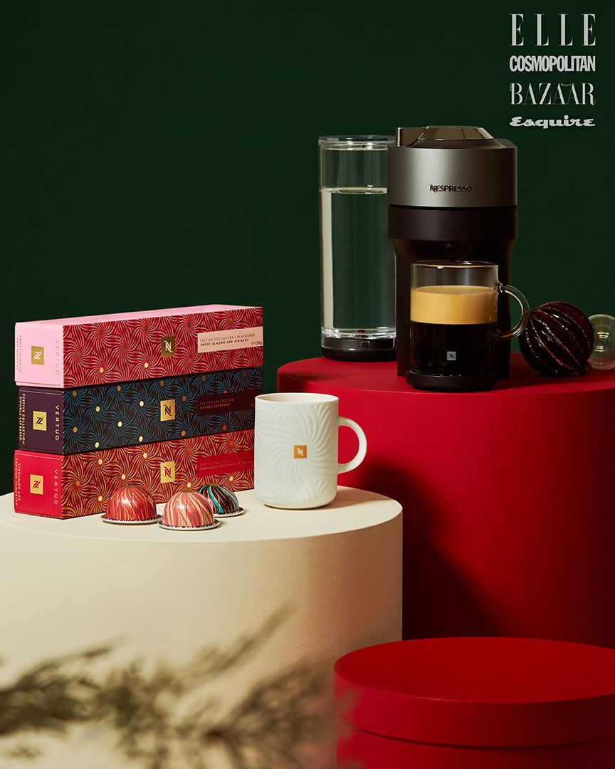버츄오 페스티브 아몬드 히비스커스향 커피는 1만2천원, 버츄오 페스티브 더블 에스프레소는 9천5백원, 버츄오 페스티브 시나몬 타마린드향 커피는 1만2천원, 커피 머그 리미티드 에디션은 2만5천원, 버츄오 팝+ 디럭스 타이탄은 23만9천원 모두 NESPRESSO.