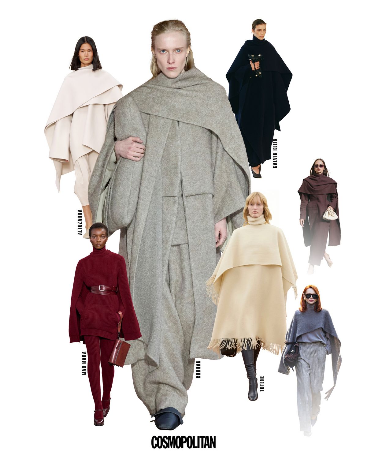 흘러내리듯 우아하게 떨어지는 실루엣, 목선을 감싸는 구조적인 라인. 넥업 케이프는 겨울 아우터 중 가장 아티스틱한 매력을 지닌 아이템이다. 이번 시즌에는 전통적인 케이프 스타일에 하이넥 디테일을 더한 것이 특징. 추위로부터 목을 보호해주는 것은 물론이고 클래식하면서도 모던한 분위기로 누구에게나 특별함을 부여한다. 막스마라나 토템처럼 드레스 위에 가볍게 걸쳐도, 데일리 룩으로 니트와 팬츠 위에 착용해도 압도적인 존재감이 살아난다. 겨울 스타일링에 한층 예술적인 깊이를 더하고 싶다면, 넥업 케이프를 눈여겨볼 것.