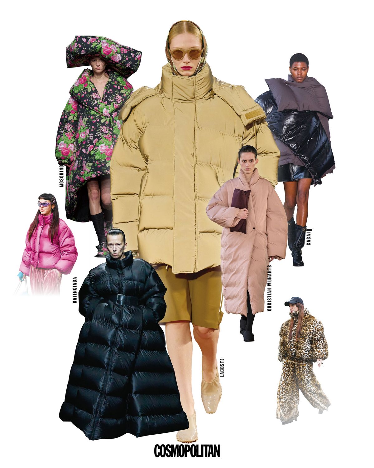 마치 ‘따뜻함의 방패’를 만들어 입은 듯, 디자이너들은 이번 시즌 패딩을 과장된 볼륨으로 밀어붙였다. 특히 충전재 사이에 스티치를 더해 ‘미쉐린 맨’처럼 입체적인 모양새와 이불을 통째로 몸에 두른 듯한 형태는 보온 기능을 넘어 조각품처럼 존재감을 드러내기까지 한다. 한 점의 바람도 허락하지 않겠다는 결연함이 느껴지는 발렌시아가의 긴 푸퍼 드레스부터 화려한 패턴으로 단번에 이목을 사로잡는 모스키노와 사카이의 레이어드 푸퍼 재킷까지, 기존보다 한층 과감하고 실험적인 방향으로 확대되며 이번 겨울 아우터 중 가장 임팩트 있는 키워드로 자리 잡았다.