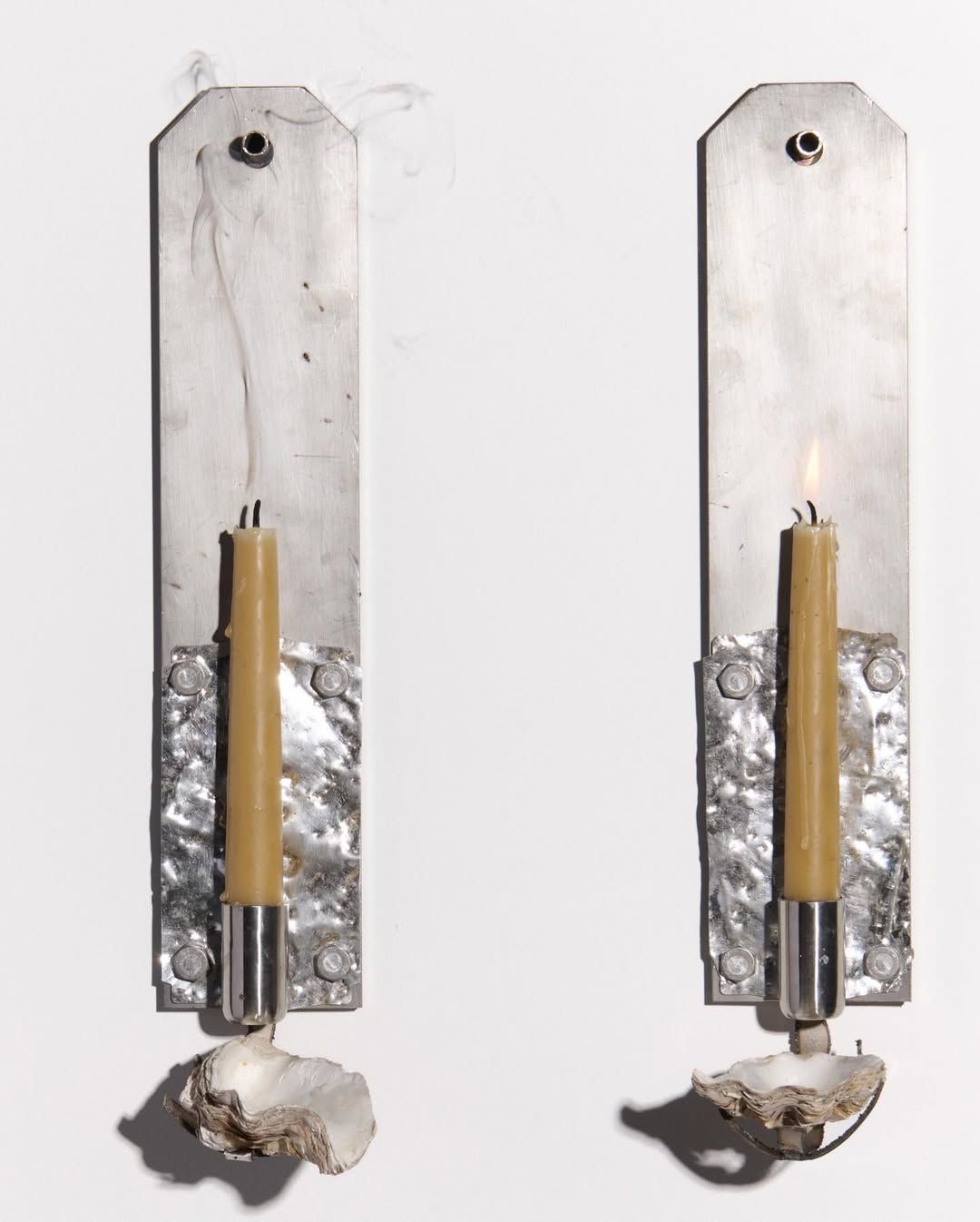 폴리 리스터의 더 다이웍스와의 협업 쿠션이나 라벤더 필로우는 식물 염료로 물들인 색감이 은은하게 퍼져, 공간 전체에 생기를 불어넣는다. 특히 인상 깊었던 건 영국 아티스트 키라 프레이의 조형미가 돋보이는 벽등과 조각들. 그리고 금속과 패브릭 등이 얽힌 형상은 촛불 모티브를 빌려 미묘한 긴장감을 주는데 이게 바로 조나단이 사랑하는 '불완전한 아름다움'이 아닐까.