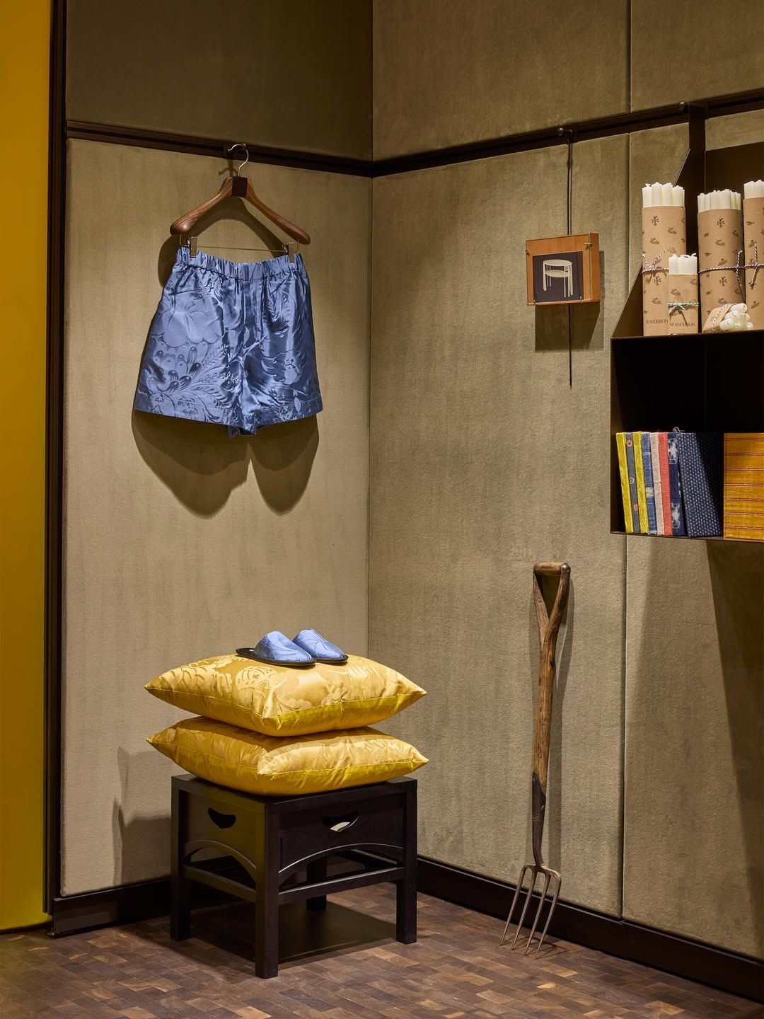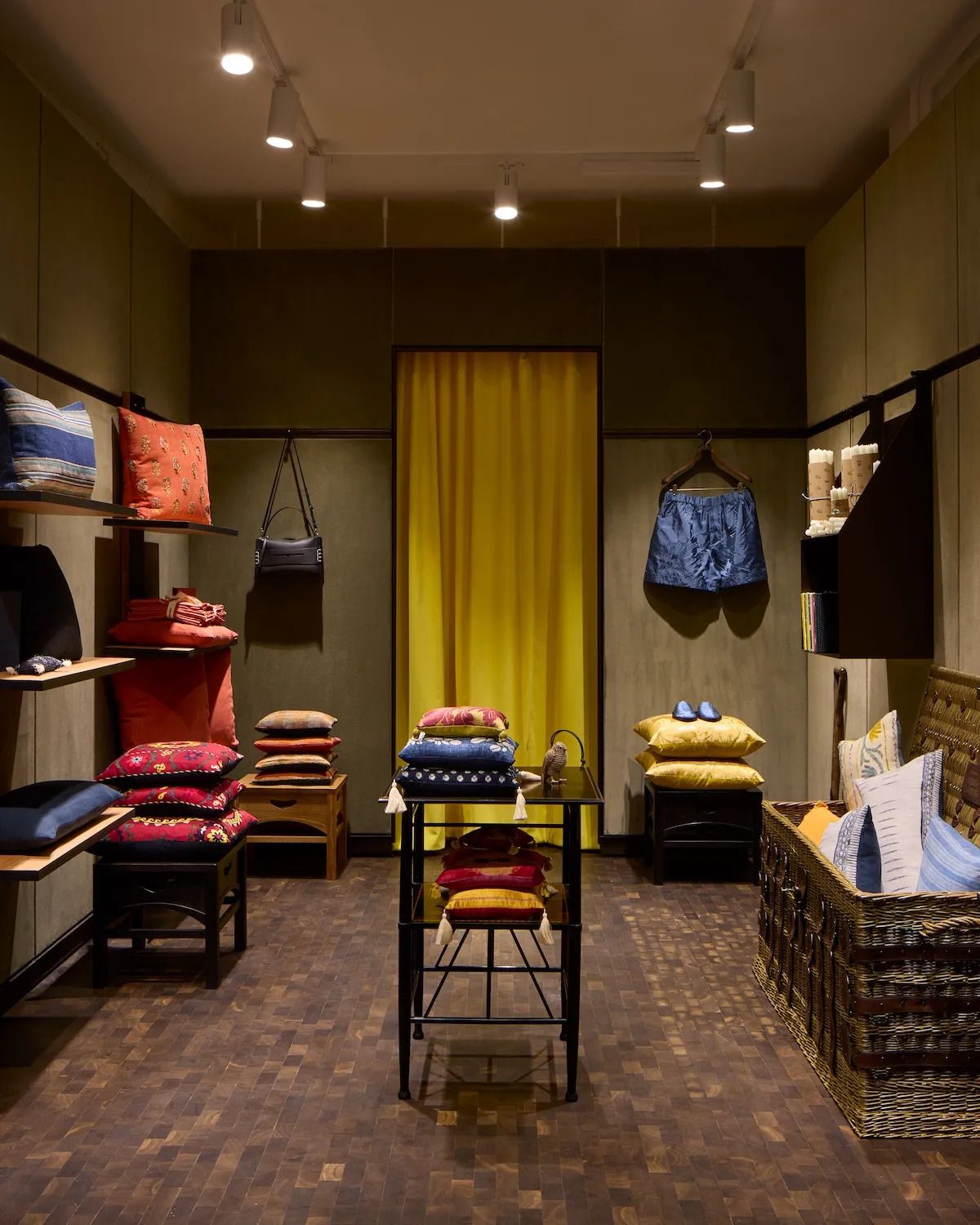 내부에 들어서면 흔히 기대하는 포근한 홈웨어 매장의 이미지가 자연스럽게 빗겨간다. 대신 공간을 채우는 건, 차분하지만 분명한 취향의 무게다. 흰색 벽돌과 벨벳 패널이 어우러진 내부는 전시장을 겸한 아티스트의 스튜디오처럼 느껴지고, 미니멀한 선반과 페그 디스플레이는 오브제 하나하나가 스스로의 존재감을 드러낼 수 있도록 여백을 남긴다. 2,400스퀘어피트 규모로 구성된 두 개 층에서는 홈 컬렉션을 중심으로 패션과 아트 피스, 오브제가 자연스럽게 뒤섞이며, 이 공간이 단순한 매장이 아닌 하나의 큐레이션 장면임을 분명히 한다.