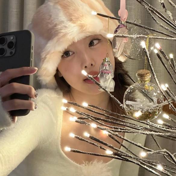 원컬러 털모자가 조금 식상하게 느껴졌다면, 르세라핌 홍은채처럼 화이트와 블랙, 컬러 블록이 사랑스러운 털모자를 골라보세요. 연말 파티룩에 입어도 손색없는 포인트 아이템이 될 수 있거든요. 이너는 레드 톱을 함께 입어 시선 집중 스타일링을 만들 것! 연말엔 레드만큼 잘 어울리는 컬러도 없으니까요. 여기에 망사 스타킹과, 사이드에 실버 장식이 달린 부츠까지 골라 매치하면 ‘센스있다’는 소리를 들을 수 있을 거예요.