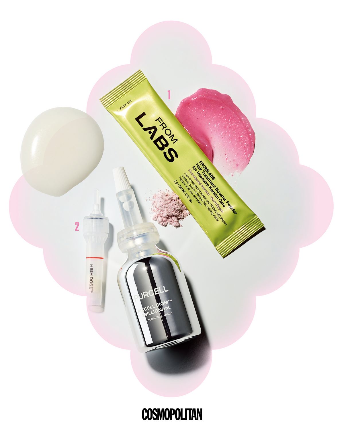 2 건강한 피부 장벽을 되찾고 싶다면, 피부 유산균에 집중해야 할 때. 프리·프로·포스트 바이오틱스 3종 유산균을 물로 희석하지 않고 파우더로 구현한 부스터샷은 픽셀바이옴™ 원액과 함께 사용할 때 장벽 케어 효과가 더 높아진다. 유산균 조합이 피부에 효과적으로 흡수돼 무너진 피부 생태계를 건강하게 정돈해주기 때문. (왼쪽부터)픽셀바이옴™ 부스터샷 파우더 5개입 3만3천원, 픽셀바이옴™ 20억/mL 원액 4만8천원 모두 Purcell.