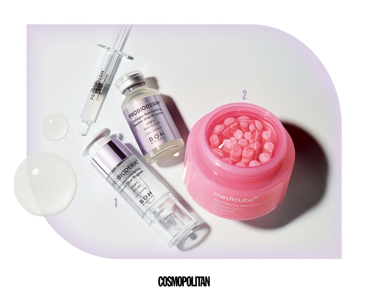 1 피부 스케일링과 탄력·광채 부스팅을 한 번에 끝내는 2-Step 프로그램. 1단계는 AHA·PHA·마이크로샷 성분이 피부 각질을 정돈해주고, 2단계에서는 프로바이오덤™·콜라겐·PDRN 등이 늘어진 모공을 조여주고, 잃어버린 피부 결·광채를 되살려준다. 프로바이오덤 콜라겐 리모델링 부스터샷 프로그램 4만2천9백원 Bioheal Boh.