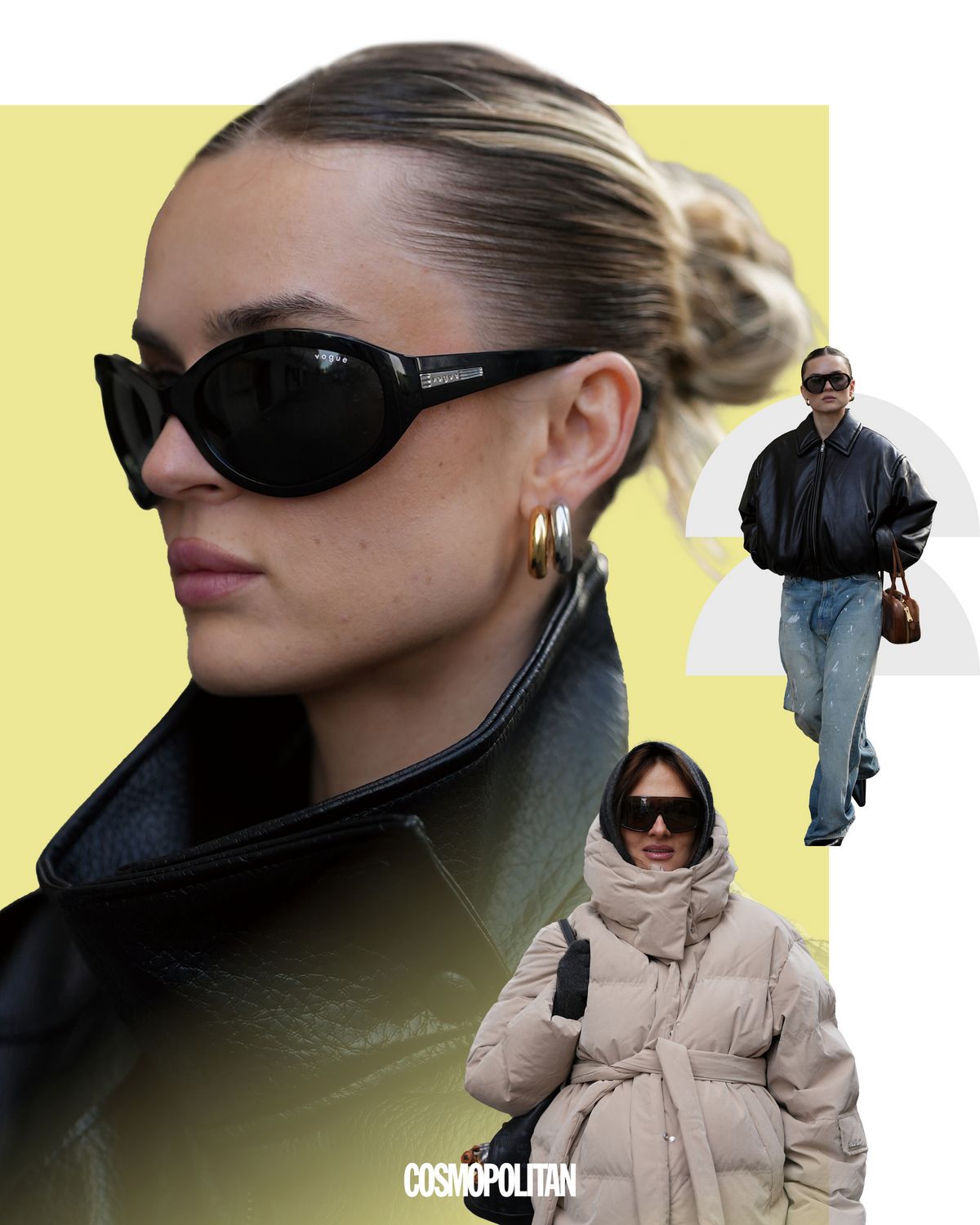회색빛 하늘 아래에서 또렷한 시선을 만들어주는 아이템이 있다면 그건 단연 선글라스다. 지난 몇 시즌 동안 레트로 무드의 사이파이 선글라스가 주목받았다면 이제는 스키 고글을 연상케 하는 빅 프레임 선글라스가 중심에 섰다. 넓은 커브와 큼지막한 프레임이 찬 바람으로부터 눈을 완벽하게 보호해줄 뿐 아니라 얼굴이 작아 보이는 시각적 효과까지 준다. 헤어스타일에 따라 분위기 역시 크게 달라진다. 매끄럽게 떨어지는 스트레이트 헤어는 선글라스의 존재감을 강조하고, 슬릭번이나 업스타일은 선글라스 라인을 선명하게 드러내 도시적인 인상을 완성한다.