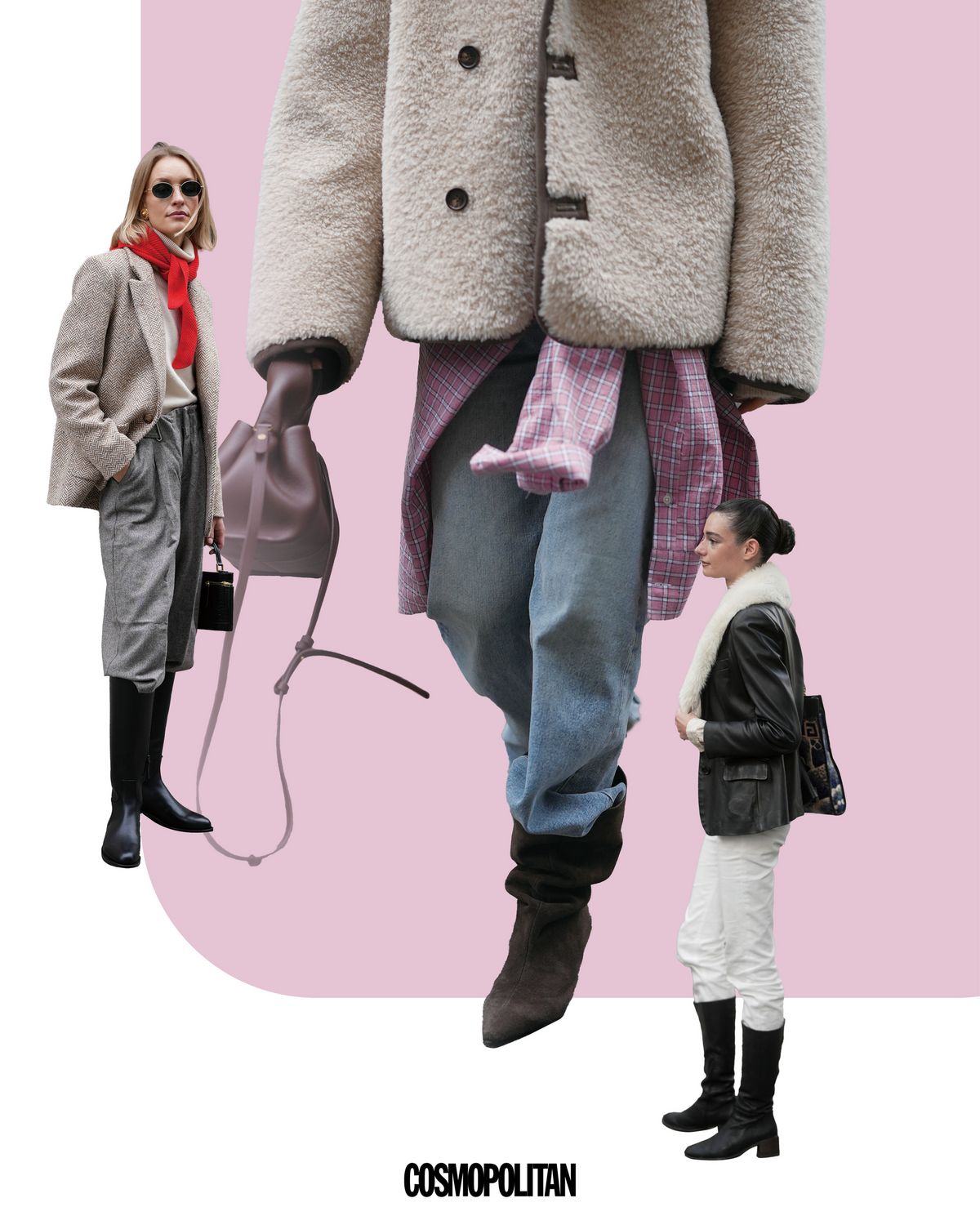 팬츠를 부츠 속에 아무렇게나 툭 꽂아 넣은 듯한 연출법은 지금 가장 쿨한 겨울 공식으로 자리 잡았다. 과감하게 밀어 넣을 때 생기는 자연스러운 주름과 볼륨은 입체적인 매력을 선사한다. 스키니 진이나 레깅스처럼 몸에 딱 붙는 팬츠를 부츠 안에 넣어 다리가 길어 보이는 효과를 줄 수도 있고, 그레이 팬츠에 블랙 부츠처럼 톤온톤 컬러를 매치하는 것도 안전하면서 스타일리시한 선택지다. 좀 더 과감한 스타일링 연출을 원한다면 한쪽 다리만 집어넣어 비대칭 실루엣을 만드는 것도 방법.