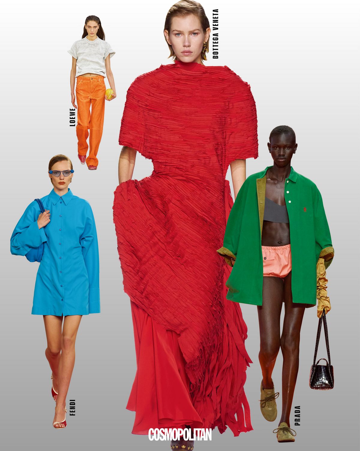 차분한 드뮤어의 시대는 저물었다. 팬톤은 올해의 컬러로 오프화이트 계열을 골랐지만, 패션계는 원색이라 말한다. 채도 100%에 가까운 원색들이 빅 하우스의 2026 S/S 런웨이를 통해 존재감을 드러내고 있다. 강렬한 원 컬러를 줄 세운 펜디와 보테가 베네타부터, 흥미로운 원색 조합을 보여준 미우미우와 프라다까지. 컬러는 강할수록, 걸친 색의 가짓수는 많을수록 룩은 한층 즐거워진다. 그중에서도 하나만 꼽으라면? 불안정한 시대에 가장 직접적으로 감정을 전달하는, 솔직한 레드!