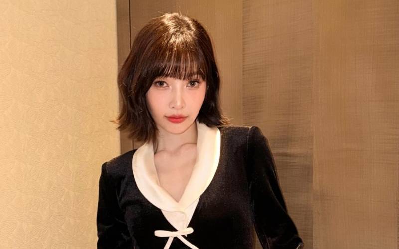 버건디 컬러 타탄체크 미니 스커트를 착용한 혜리. 인스타그램 @hyeri_0609
