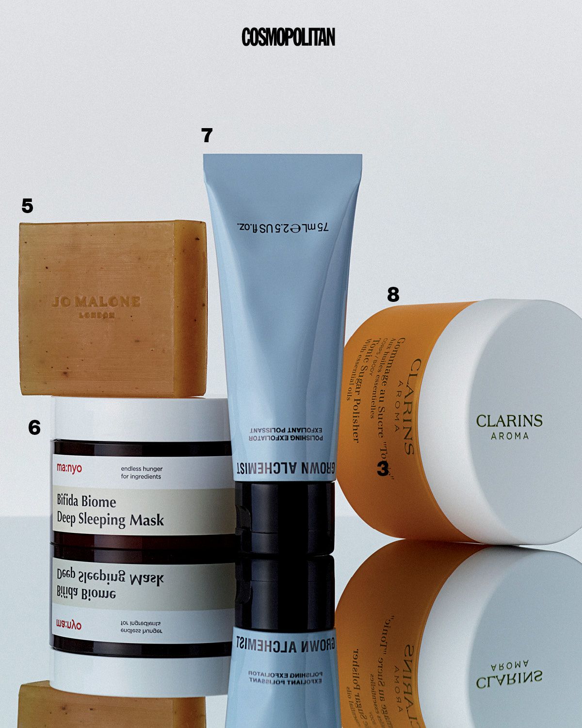 5 _ 보디 스크럽이라고 하면 왠지 날 잡고 해야 할 것 같아, 괜히 귀찮아질 때 제격. 겉보기엔 일반 비누처럼 보이지만, 문지르면 피부 결을 매끄럽게 정리해주는 익스폴리에이팅 솝. 손으로 거품을 내서 써도 좋고, 배스 타월에 묻히면 거품이 훨씬 풍성해진다. 찐 포인트는 향! 몸을 닦는 내내 레몬 껍질, 월계수, 버베나가 섞인 시트러스 아로마 향이 은근히 퍼져 샤워 시간을 힐링 타임으로 변신. 자극 없이 순해 얼굴에 써도 될 정도다. 리바이탈라이즈 익스폴리에이팅 솝 3만1천원 Jo Malone London.