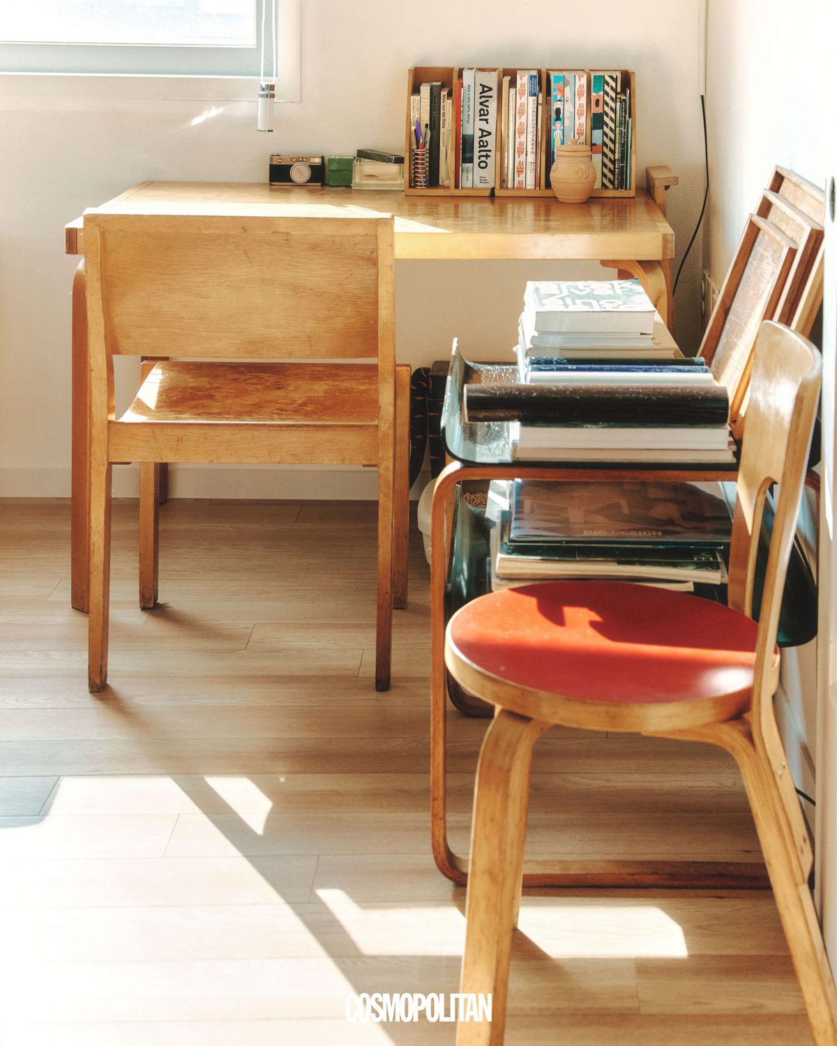 알바 알토와 아이노 알토가 디자인한 가구와 조명, 그리고 유리 제품 등을 수집하고 있다. 2020년에 ‘스툴60’을 본격적으로 수집하기 시작했으니 만 6년이 됐다. 처음 알토 디자인 가구에 매료된 건 오래된 나무의 파티나 때문이었다. 1930년대에 제작된 제품의 나무 색은 인위적으로 따라 할 수 없는 부분이다. 처음엔 단순히 외관의 아름다움에서 시작했다면, 수집은 좀 더 다양한 부분을 고려하며 이어졌다. 알토 가구가 가진 컬러, 소재, 시대적 배경 등의 다양한 요소가 수집욕을 자극했다.