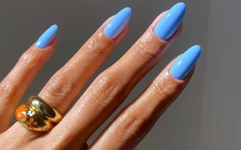 카일리 제너는 누디한 시럽 네일 위에 하늘색, 분홍색, 노랑색의 스톤으로 플라워 패턴을 완성했어요. 작고 컬러풀한 스톤을 플라워 패턴으로 디자인해 사랑스럽고 키치한 무드를 강조했죠. 움직일 때마다 빛에 따라 반사되는 컬러 스톤 덕분에 심플한 의상에 포인트 주기도 좋아요. 특히 짧은 네일에도 응용할 수 있어 단조롭지만 확실한 포인트가 되어줍니다.