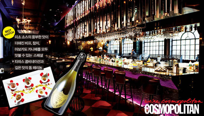 소위 ‘뜨는 동네’가 되면서 이태원엔 지난 2~3년간 이국적인 감각에 고급스러움까지 겸비한 라운지와 클럽이 꽤 많이 생겨났다. 하지만 클럽 ‘B1’과 라운지 ‘Between’을 운영하는 ‘Myk inc’에서 새롭게 오픈한 글램라운지는 이전의 다른 라운지와는 확연히 구분되는 화려한 인테리어를 자랑한다. 일본의 유명 호텔에서 경력을 쌓은 셰프가 선보이는 이곳의 요리는 문어, 쑥갓 같은 다양한 재료를 사용하는 것이 특징. 새콤한 맛의 소스와 어우러져 샴페인 맛을 더욱 돋운다. 가격 스페셜 타파스 콤비네이션 8만원, 돔 페리뇽 45만원 영업시간 오후 7시~새벽 3시 위치 이태원 해밀턴 호텔 뒤편 디스트릭트 2층 문의 796-6853