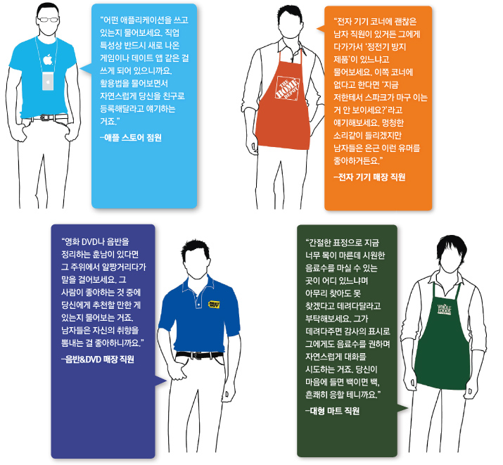애플 스토어, 음반 매장, 전자 기기 숍, 대형 마트. 의외로 스마트해 보이고 훈훈한 알바들이 포진해 있는 곳이다! 앞으로는 마음에 쏙 드는 남자가 있는 매장에서 쇼핑을 하게 된다면, 그곳 직원들이 직접 얘기한 천재적인 팁을 한번 활용해보는 건 어떨까? 쪽팔려 봤자 안 가면 그만이니 밑져야 본전!